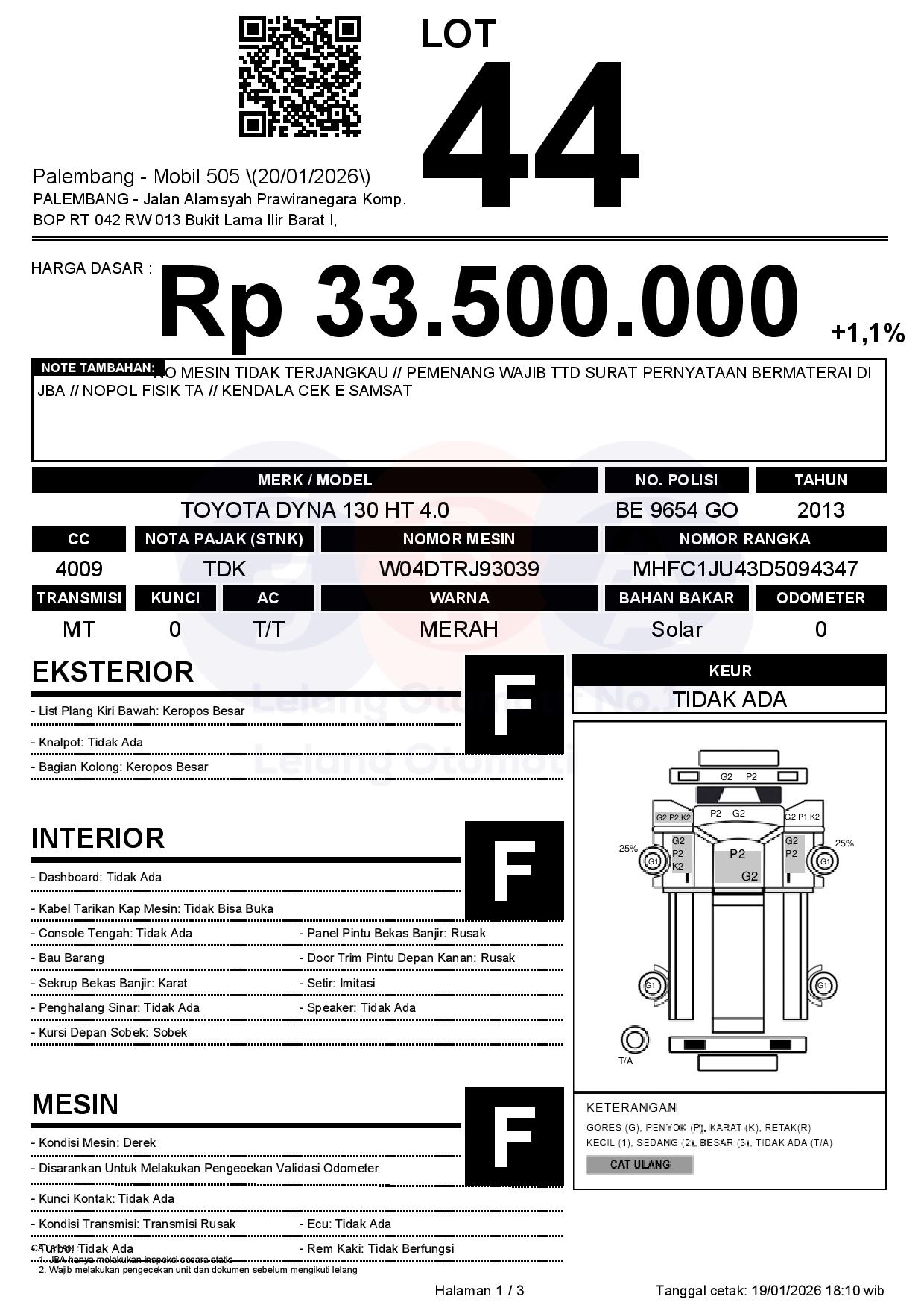 Tanggal Lelang: 20/01/2026 | 13:00 WIB
