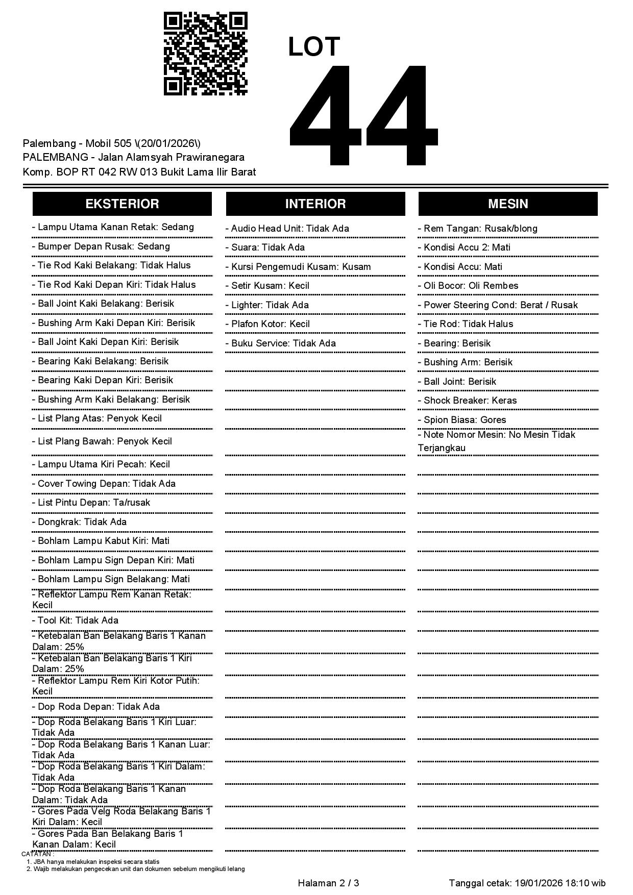 2. Peserta lelang wajib cek unit & dokumen