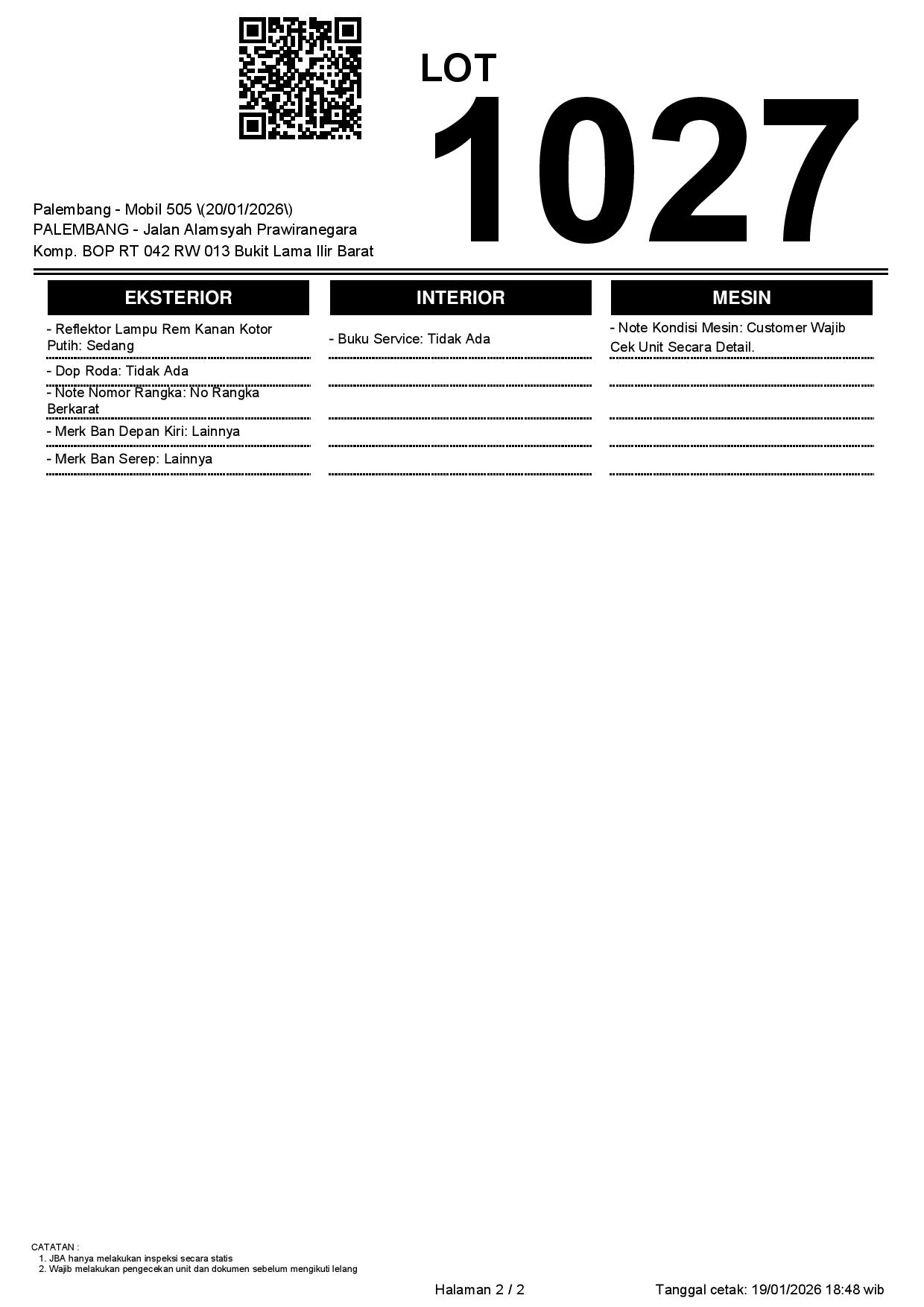 2. Peserta lelang wajib cek unit & dokumen