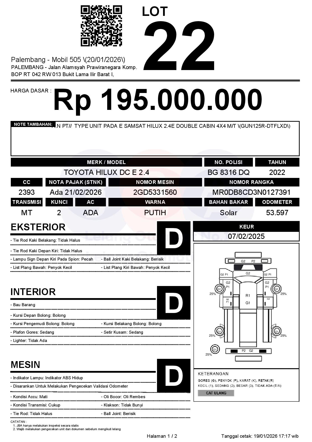 Tanggal Lelang: 20/01/2026 | 13:00 WIB