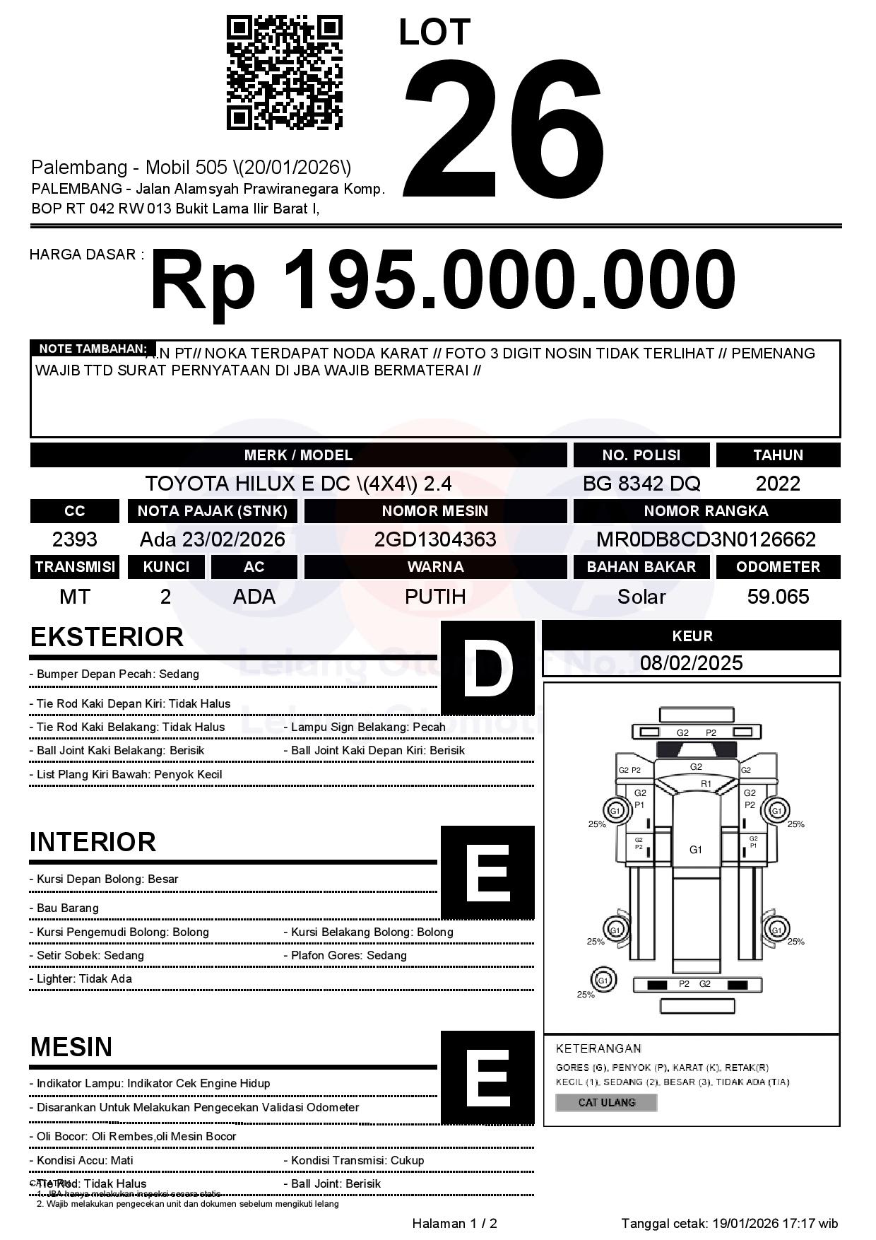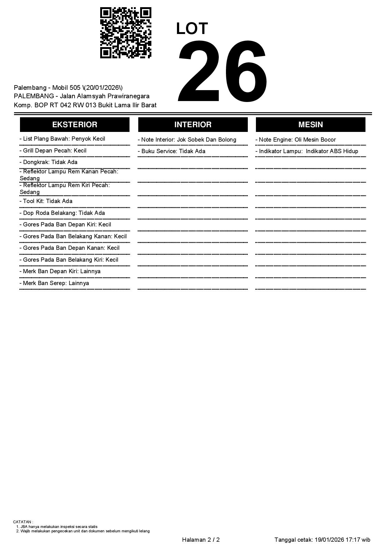 Tanggal Lelang: 20/01/2026 | 13:00 WIB