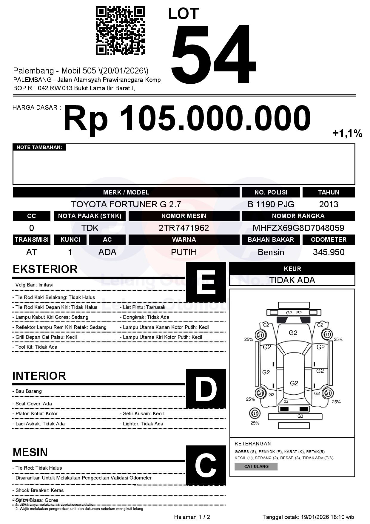 Tanggal Lelang: 20/01/2026 | 13:00 WIB