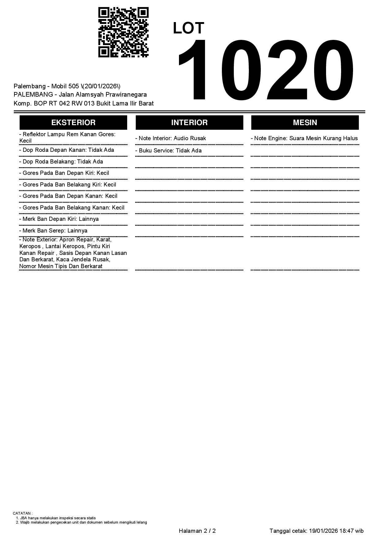 Tanggal Lelang: 20/01/2026 | 13:00 WIB