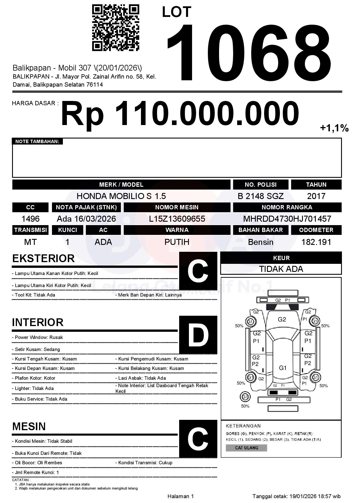 Tanggal Lelang: 20/01/2026 | 14:00 WITA