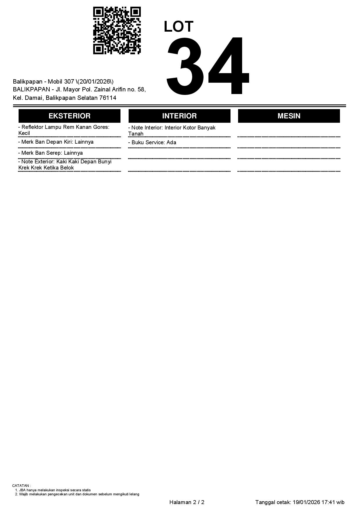1. Peserta lelang wajib cek unit & dokumen