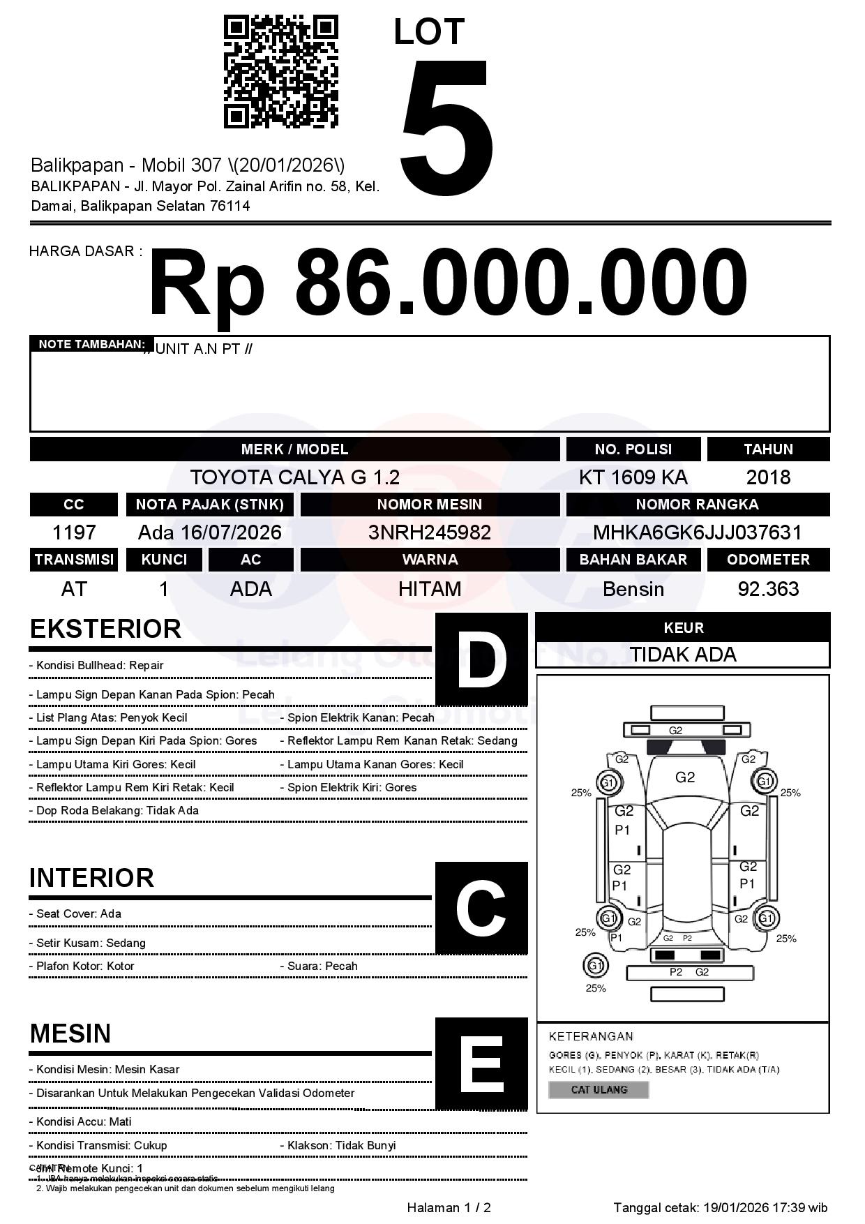 Tanggal Lelang: 20/01/2026 | 13:00 WITA