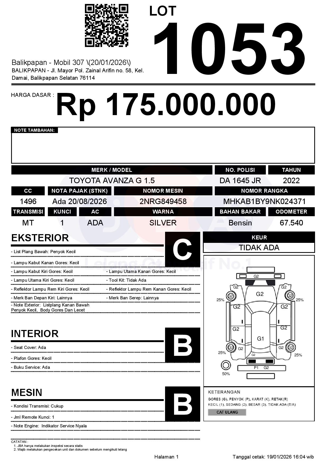 Tanggal Lelang: 20/01/2026 | 14:00 WITA