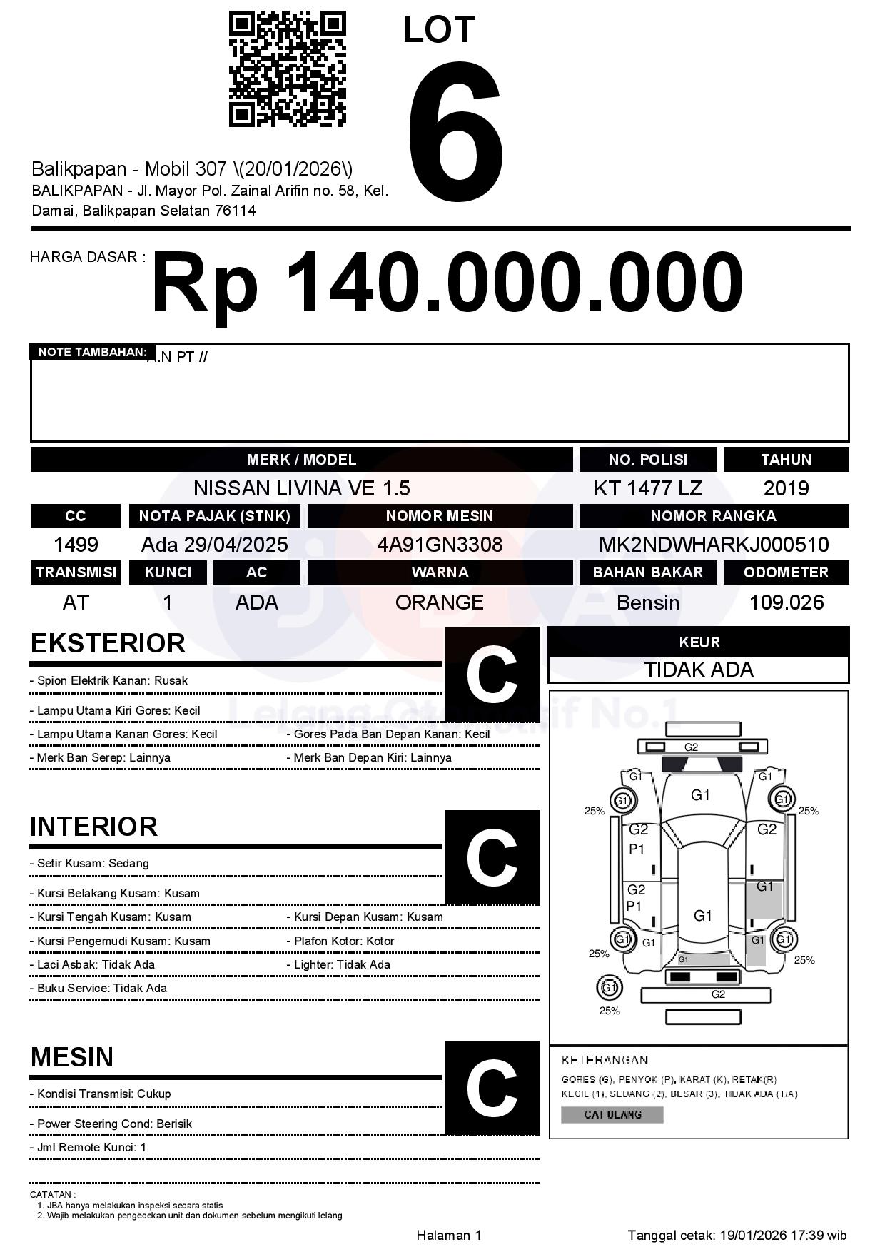 Tanggal Lelang: 20/01/2026 | 13:00 WITA