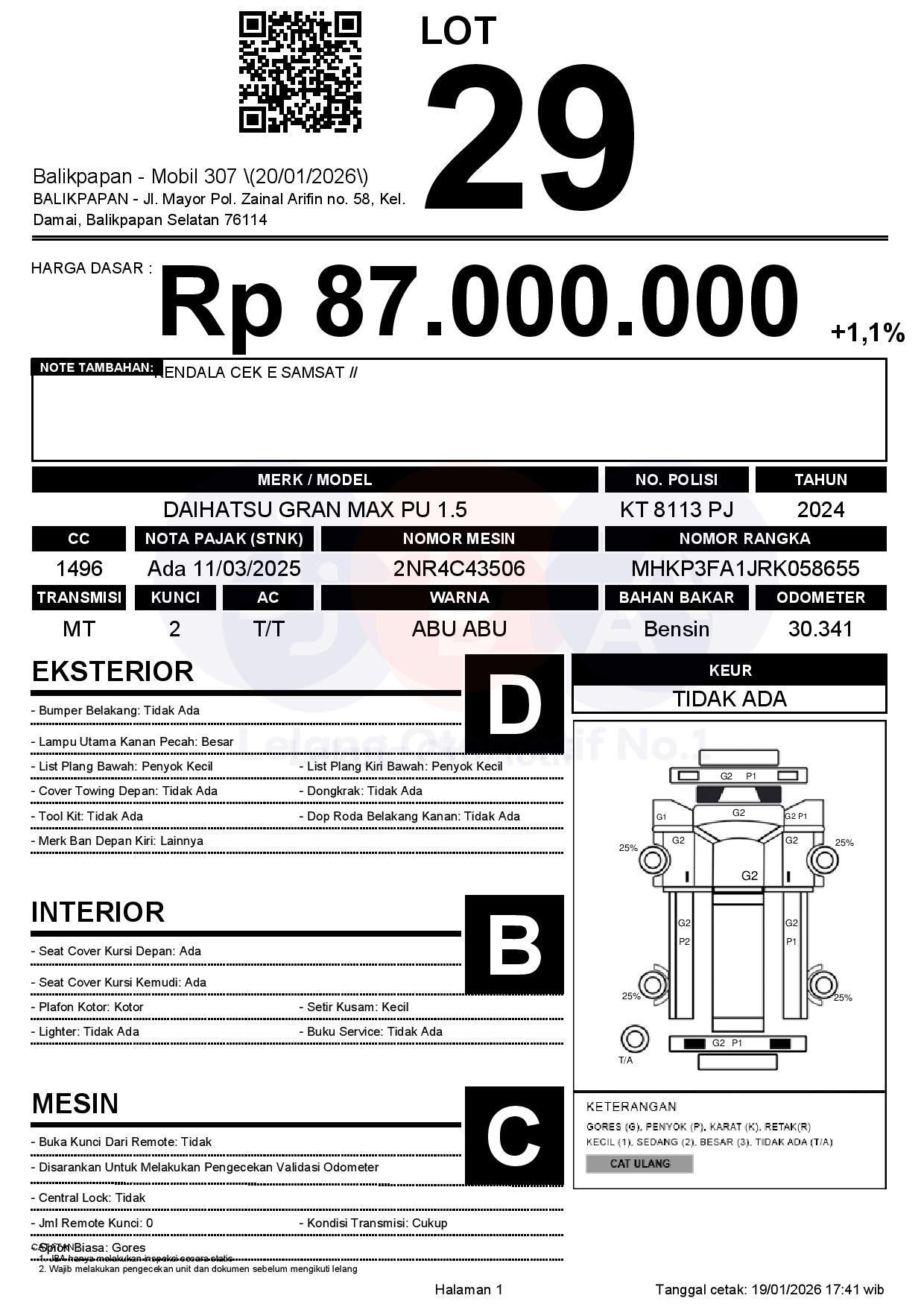 Tanggal Lelang: 20/01/2026 | 13:00 WITA