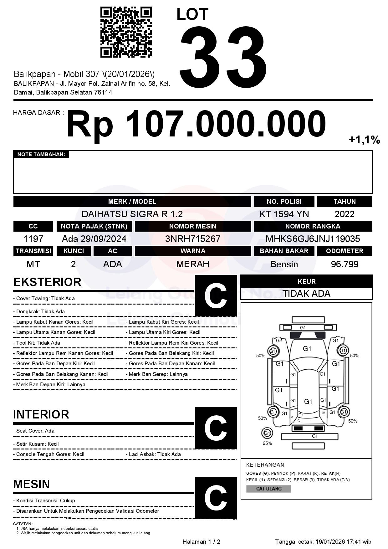 Tanggal Lelang: 20/01/2026 | 13:00 WITA
