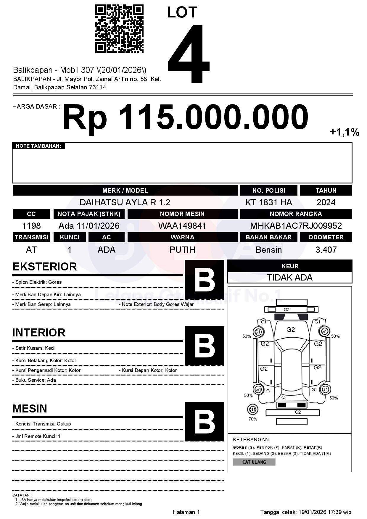 Tanggal Lelang: 20/01/2026 | 13:00 WITA