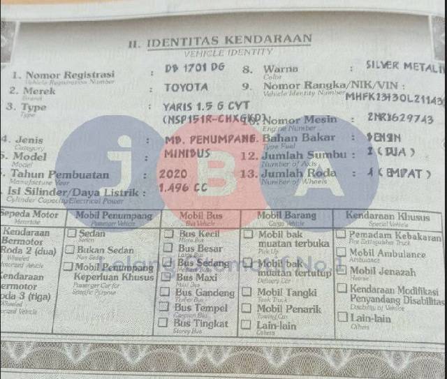 WAJIB CEK UNIT & DOKUMEN SECARA LANGSUNG // WAJIB CEK KEABSAHAN UNIT(CEK SAMSAT/CEK BLOKIR) // NO RANGKA DI DOKUMEN BPKB TIDAK TERLIHAT 2 DIGIT PEMENANG WAJIB TTD SURAT PERNYATAAN DI JBA WAJIB BERMATERAI // TERDAPAT PERBEDAAN NOPOL FISIK DB 1009 LY DAN DI DOKUMEN DB 1701 DG // NOPOL FISIK BELAKANG TA