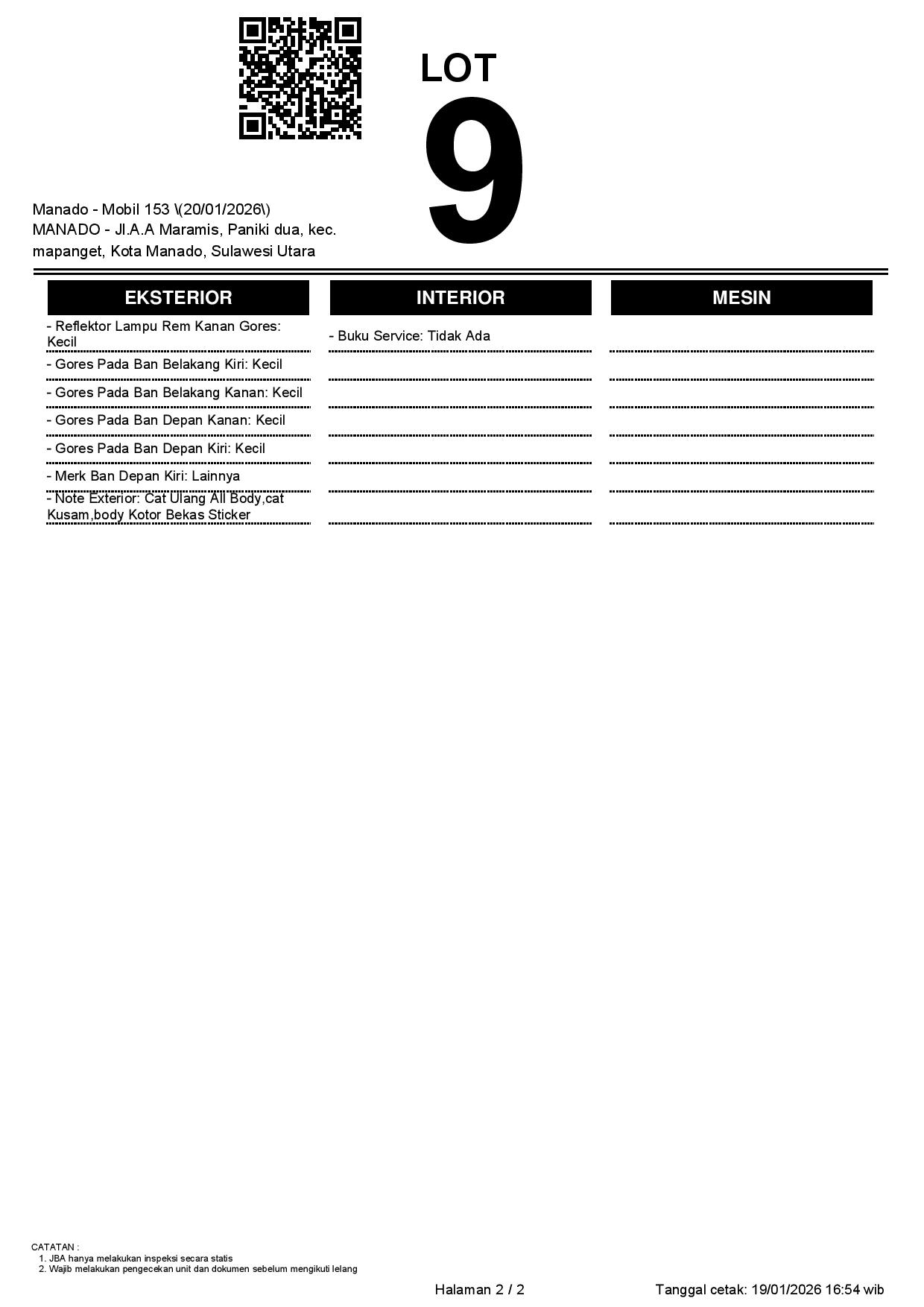 Tanggal Lelang: 20/01/2026 | 13:00 WITA