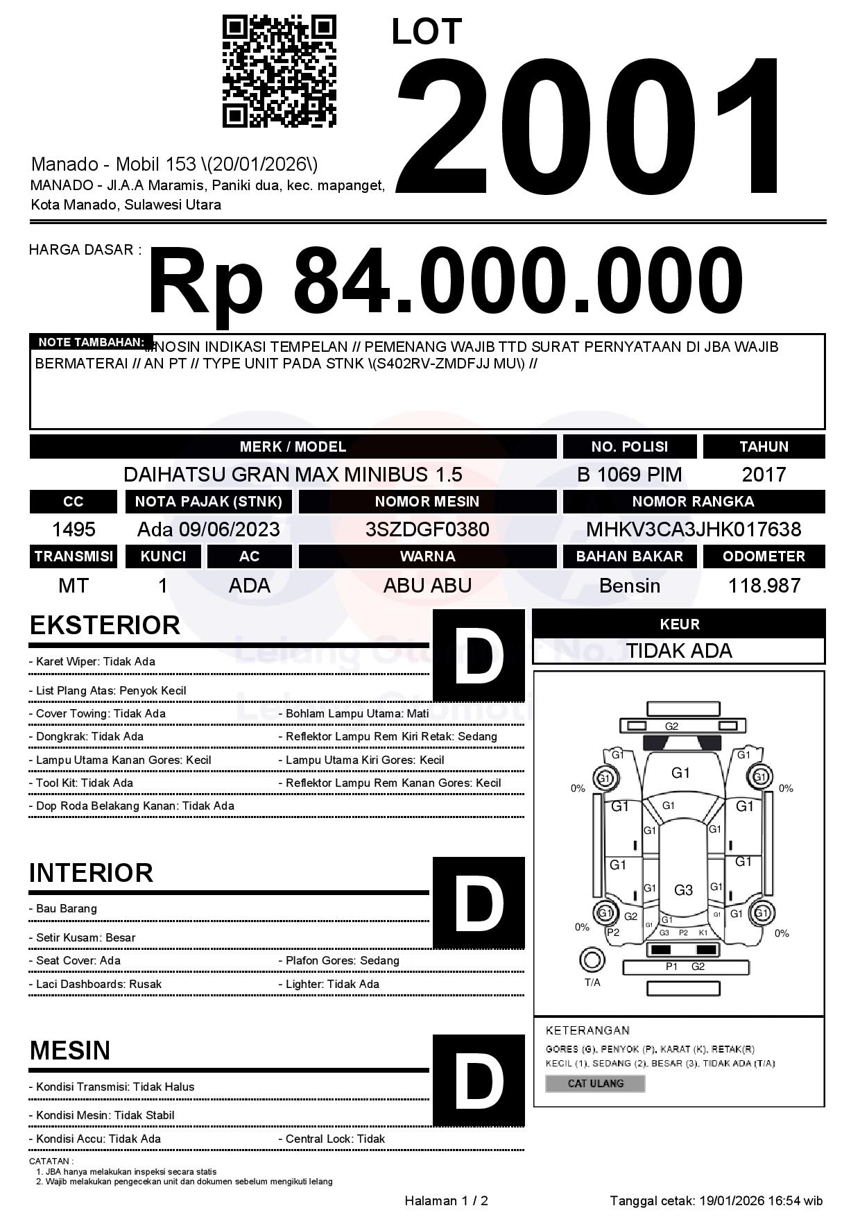 Tanggal Lelang: 20/01/2026 | 14:00 WITA