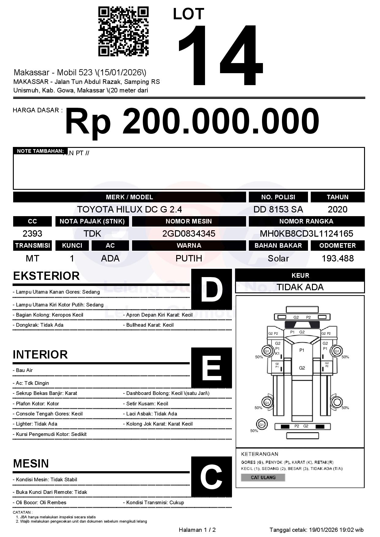 Tanggal Lelang: 20/01/2026 | 14:00 WITA