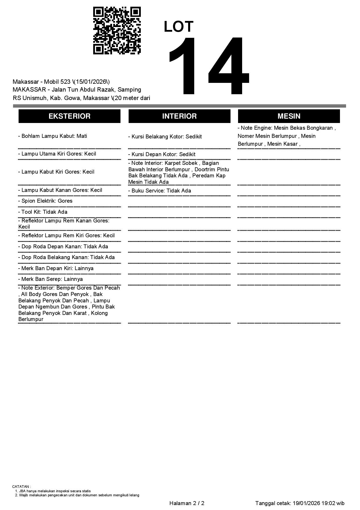 1. Peserta lelang wajib cek unit & dokumen