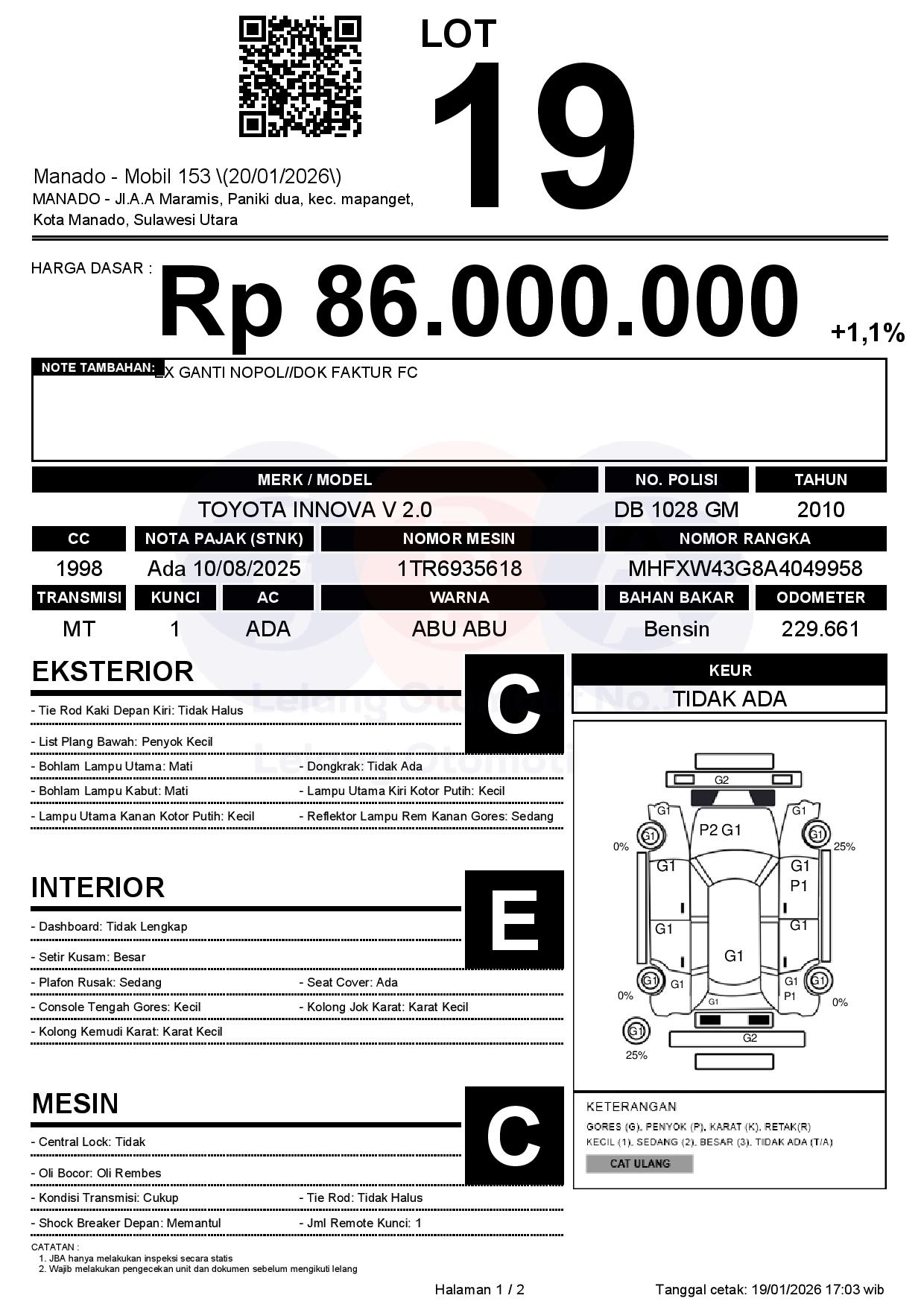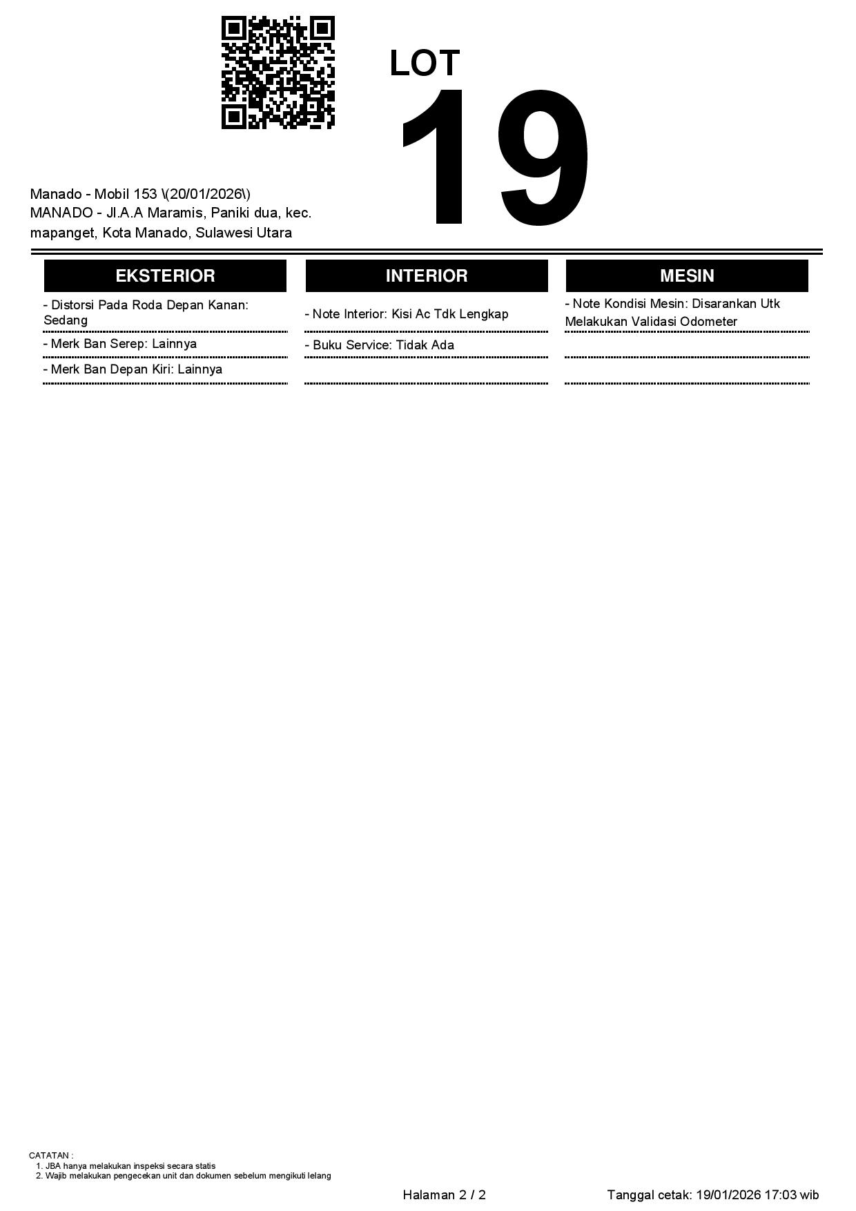 Tanggal Lelang: 20/01/2026 | 13:00 WITA