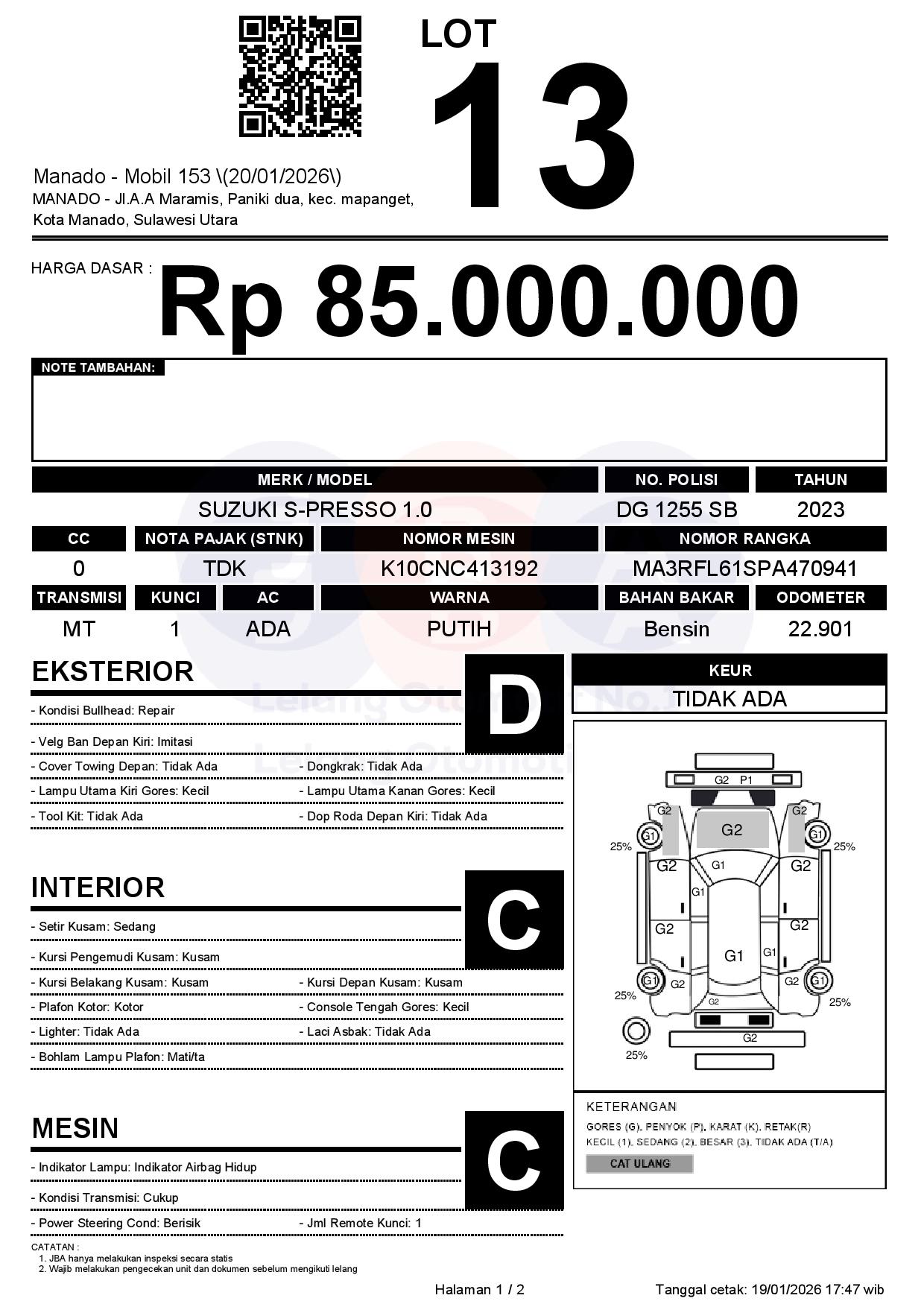 Tanggal Lelang: 20/01/2026 | 13:00 WITA