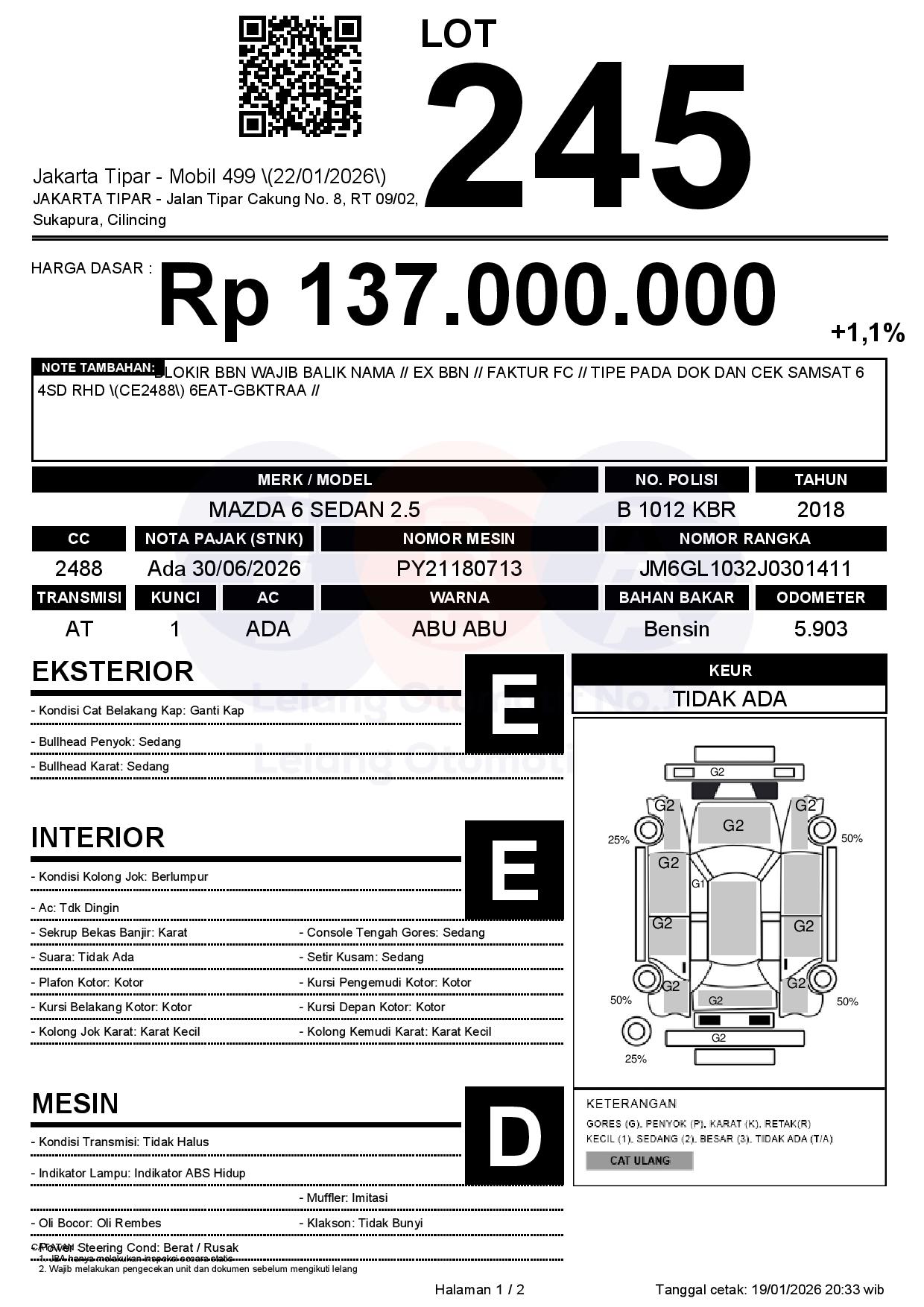 Tanggal Lelang: 22/01/2026 | 13:00 WIB