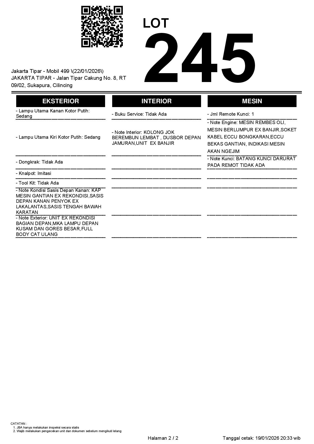 2. Peserta lelang wajib cek unit & dokumen