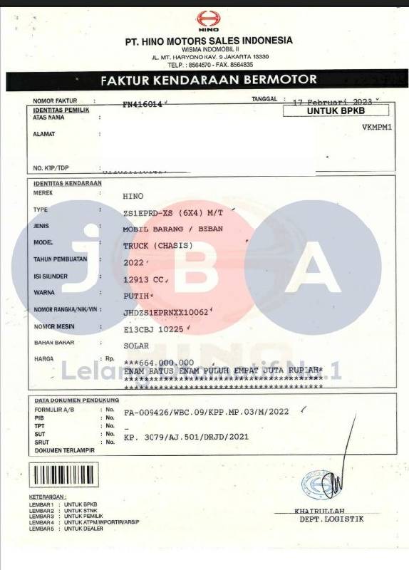 NOMOR MESIN TIDAK ADA // AN PT //UNIT OFF THE ROAD //BPKB TIDAK ADA // HANYA TERLAMPIR FAKTUR//
