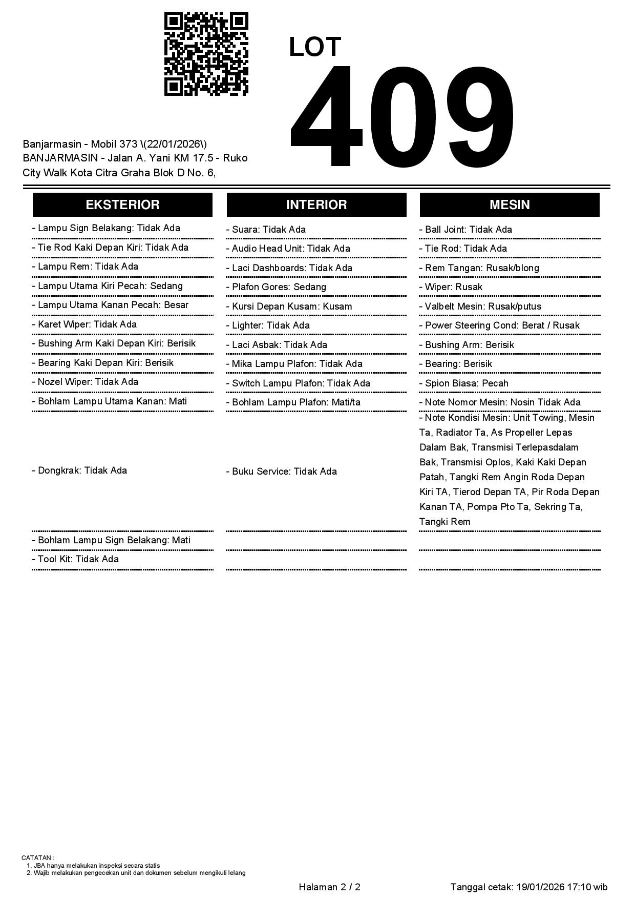 2. Peserta lelang wajib cek unit & dokumen