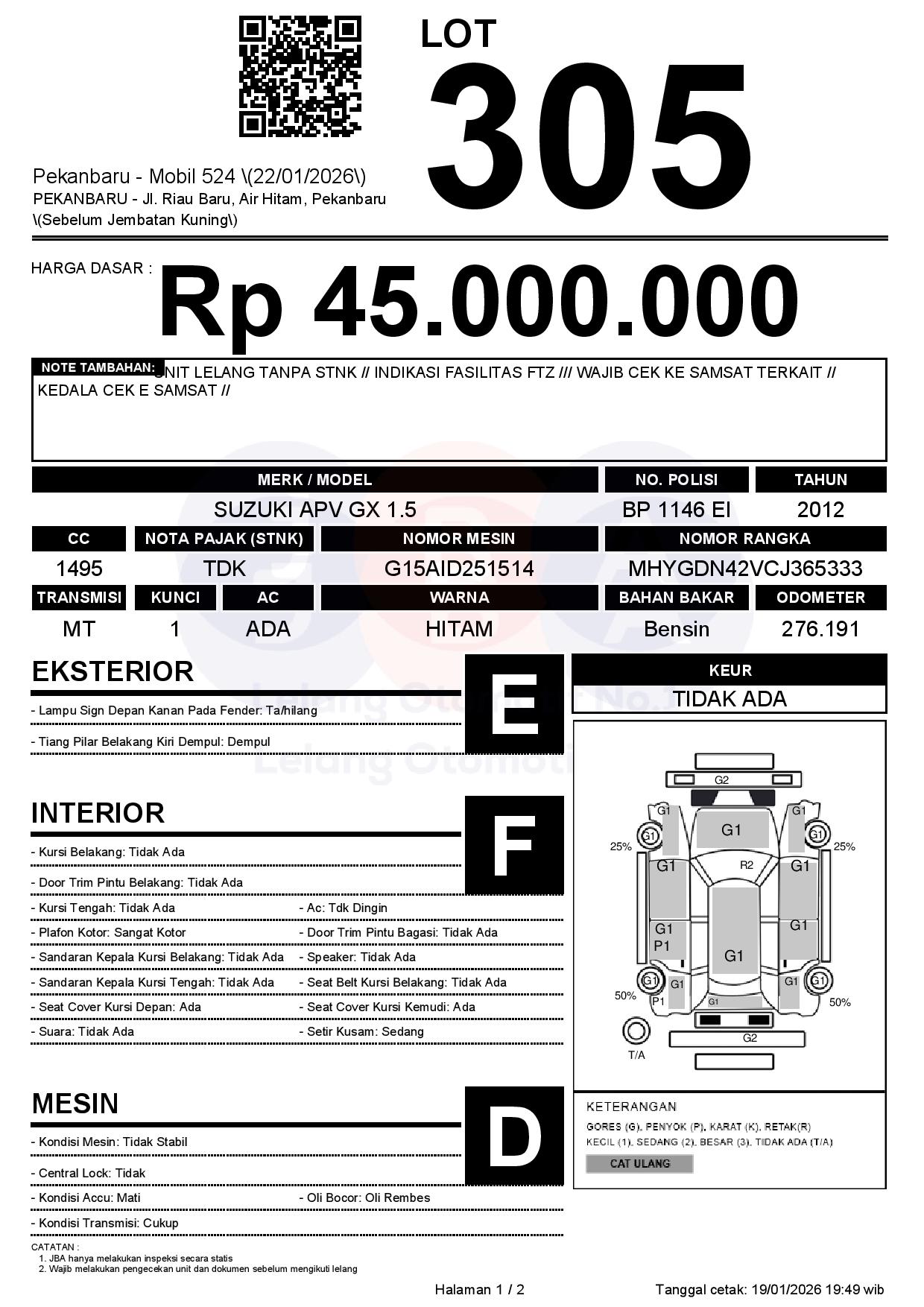 UNIT LELANG TANPA STNK // INDIKASI FASILITAS FTZ /// WAJIB CEK KE SAMSAT TERKAIT // KEDALA CEK E SAMSAT //