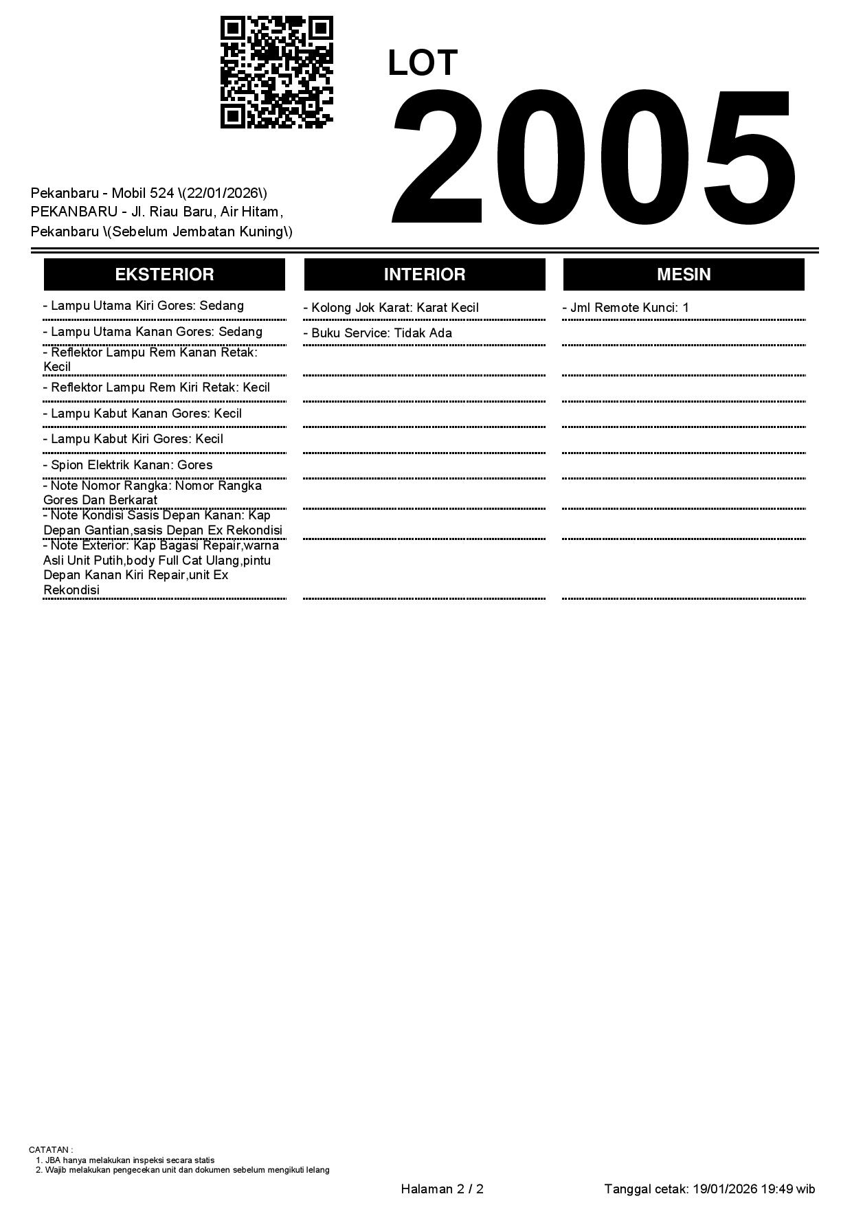 1. Peserta lelang wajib cek unit & dokumen