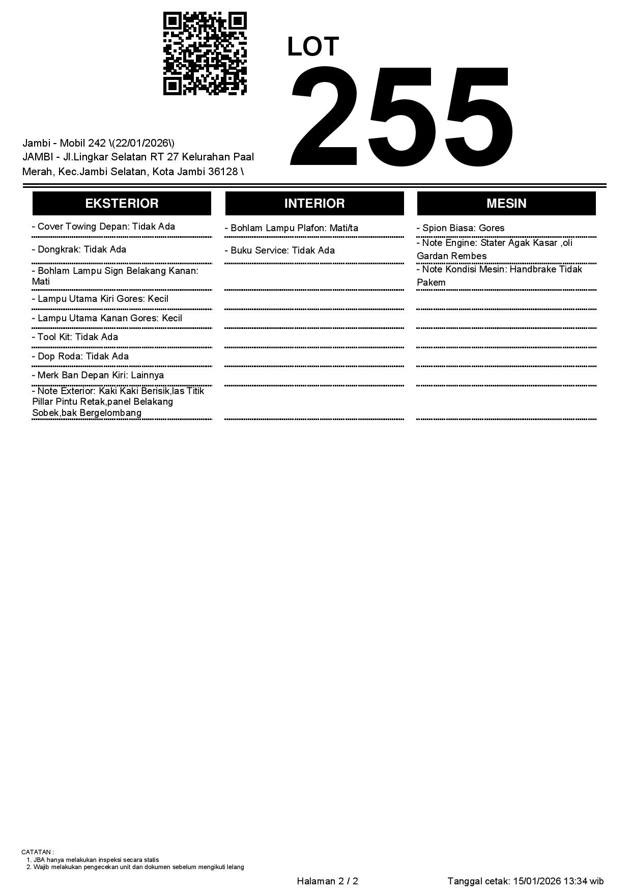 2. Peserta lelang wajib cek unit & dokumen