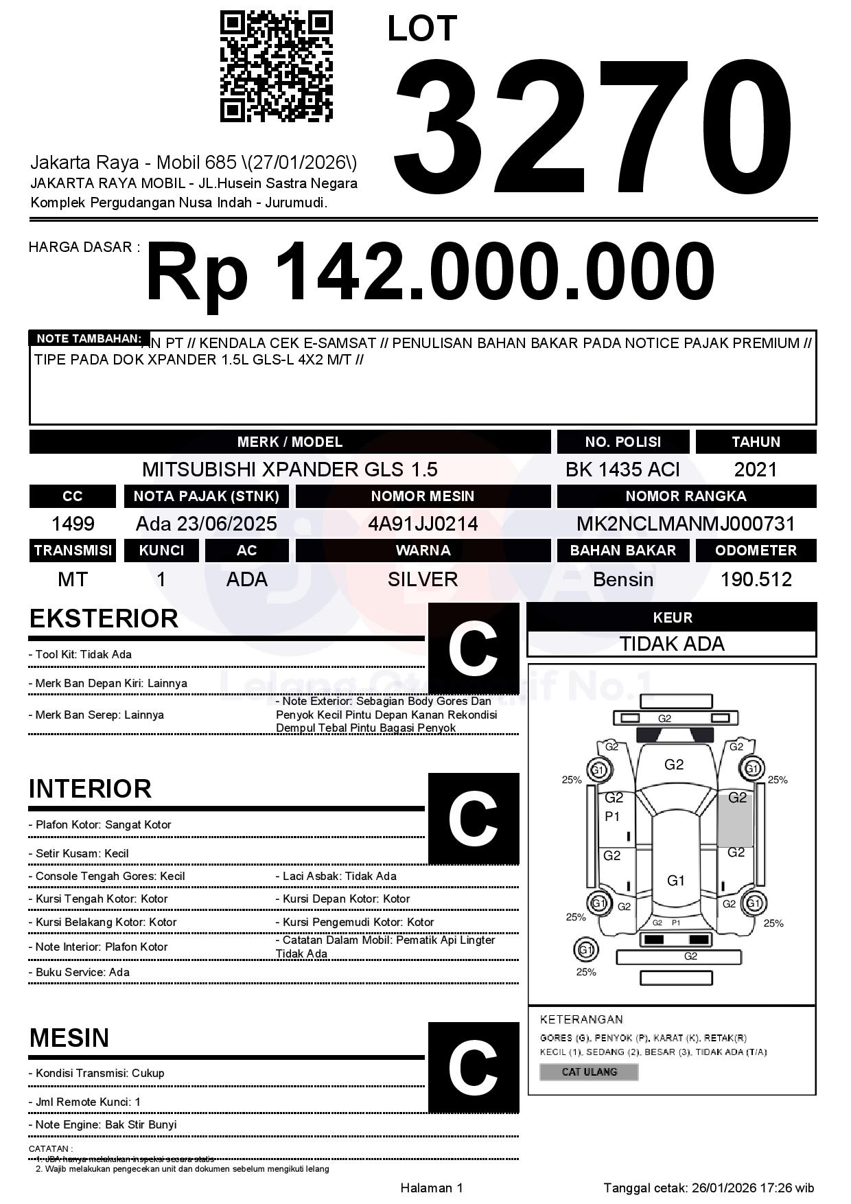 Tanggal Lelang: 27/01/2026 | 13:00 WIB