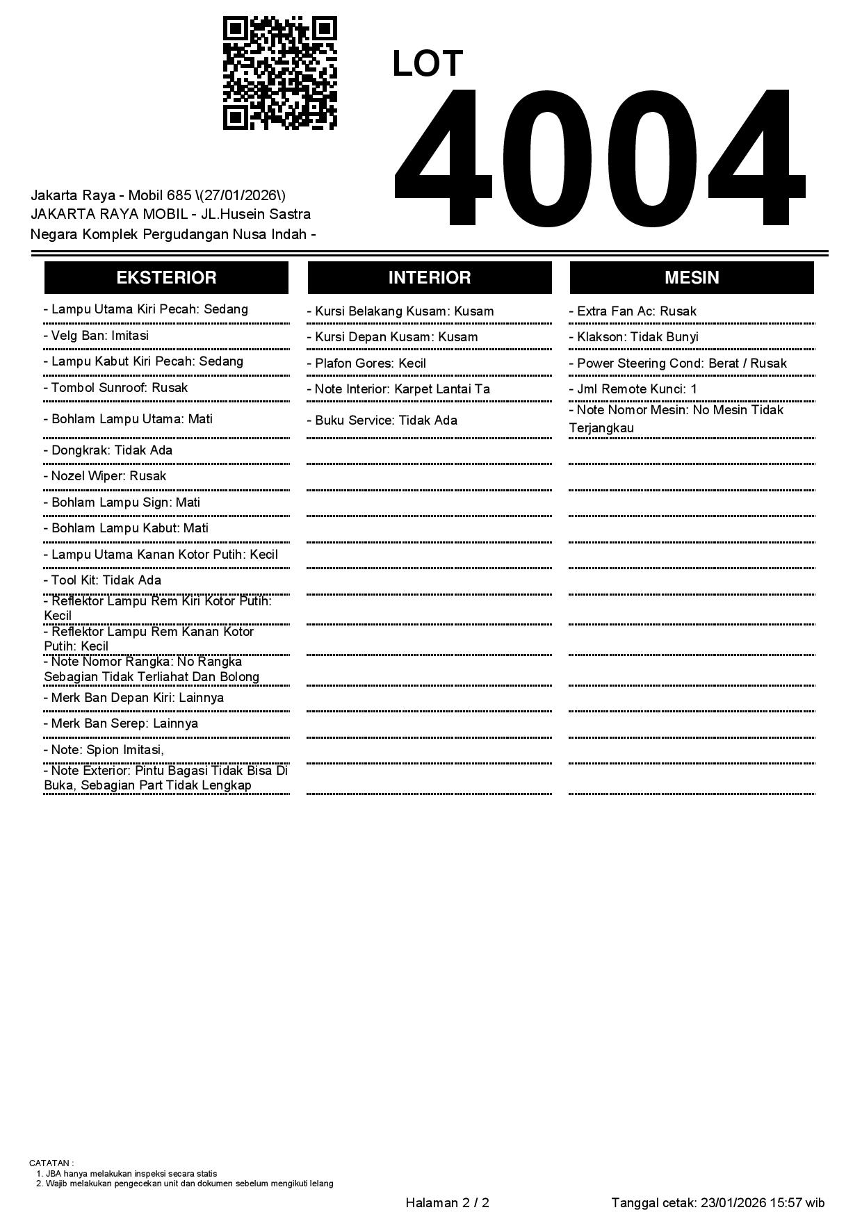 1. Peserta lelang wajib cek unit & dokumen