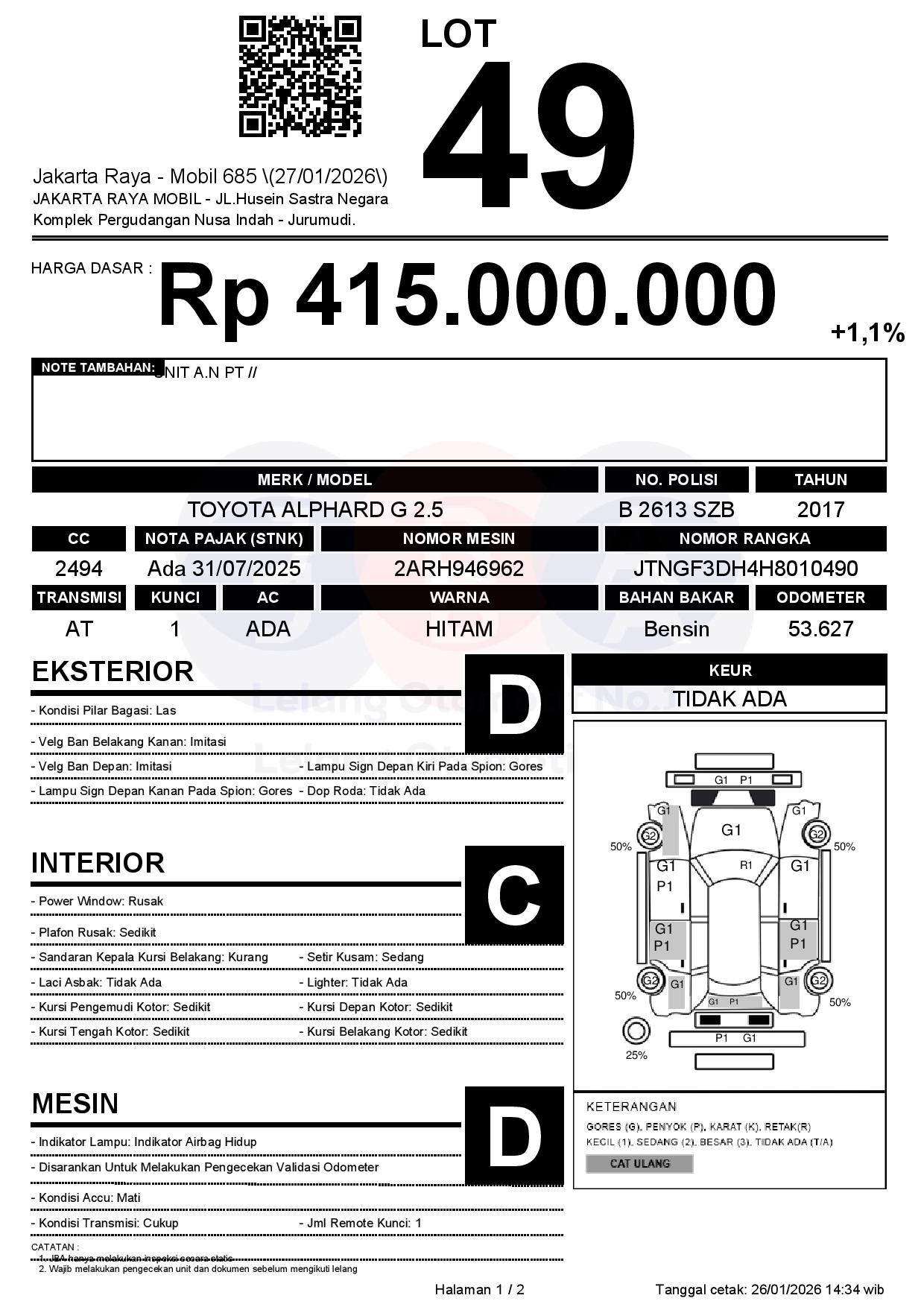 Tanggal Lelang: 27/01/2026 | 13:00 WIB