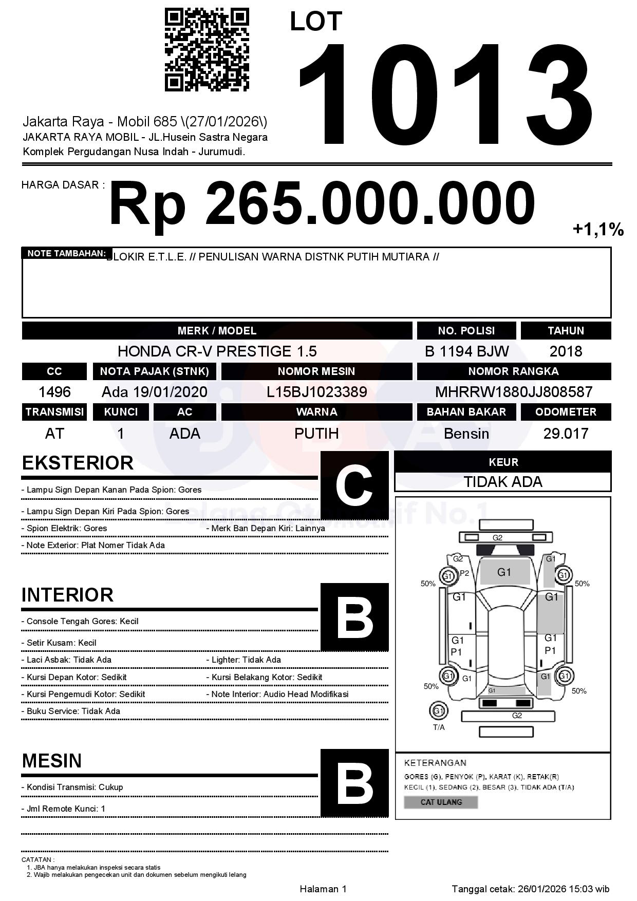 Tanggal Lelang: 27/01/2026 | 13:00 WIB