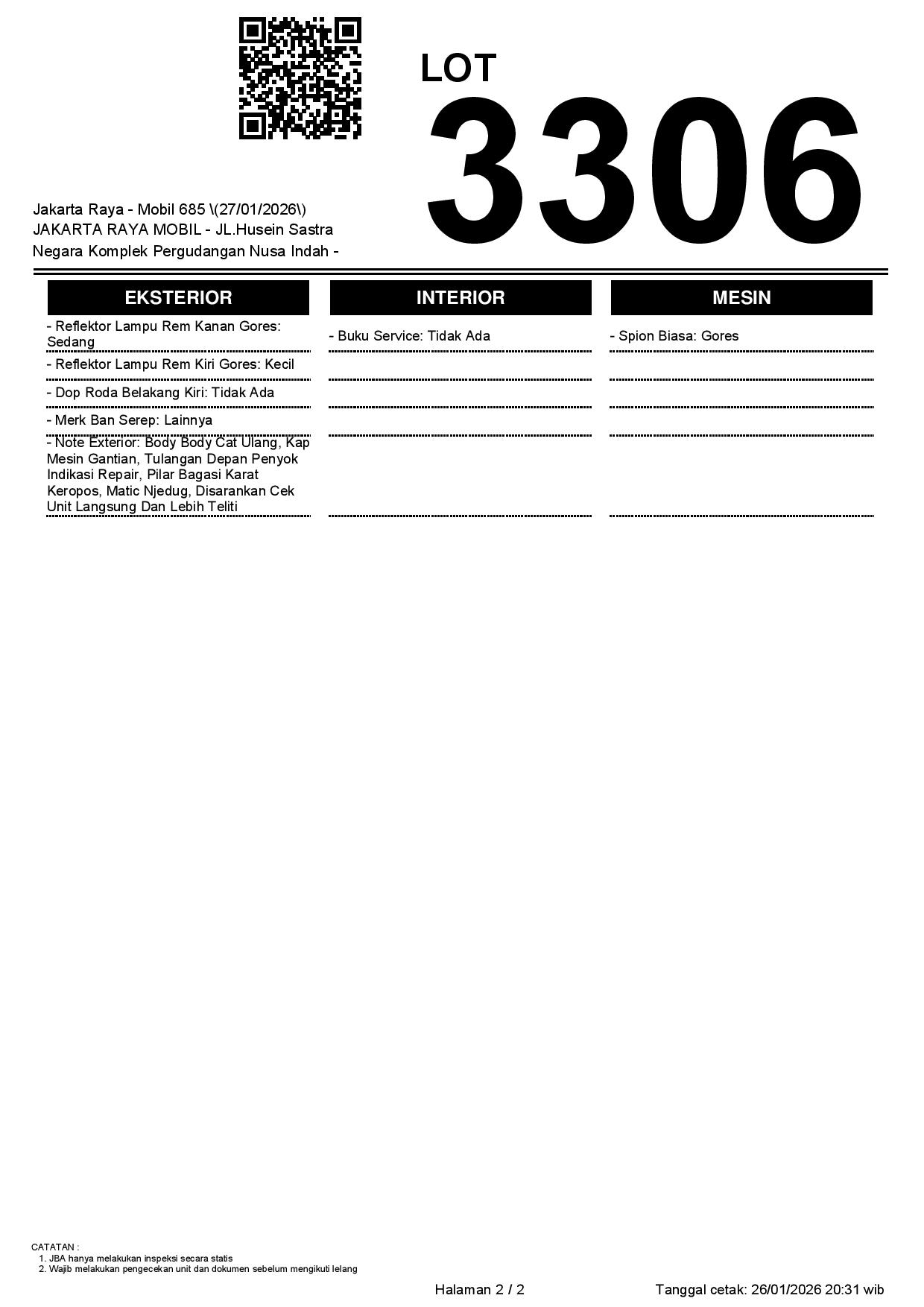 Tanggal Lelang: 27/01/2026 | 13:00 WIB