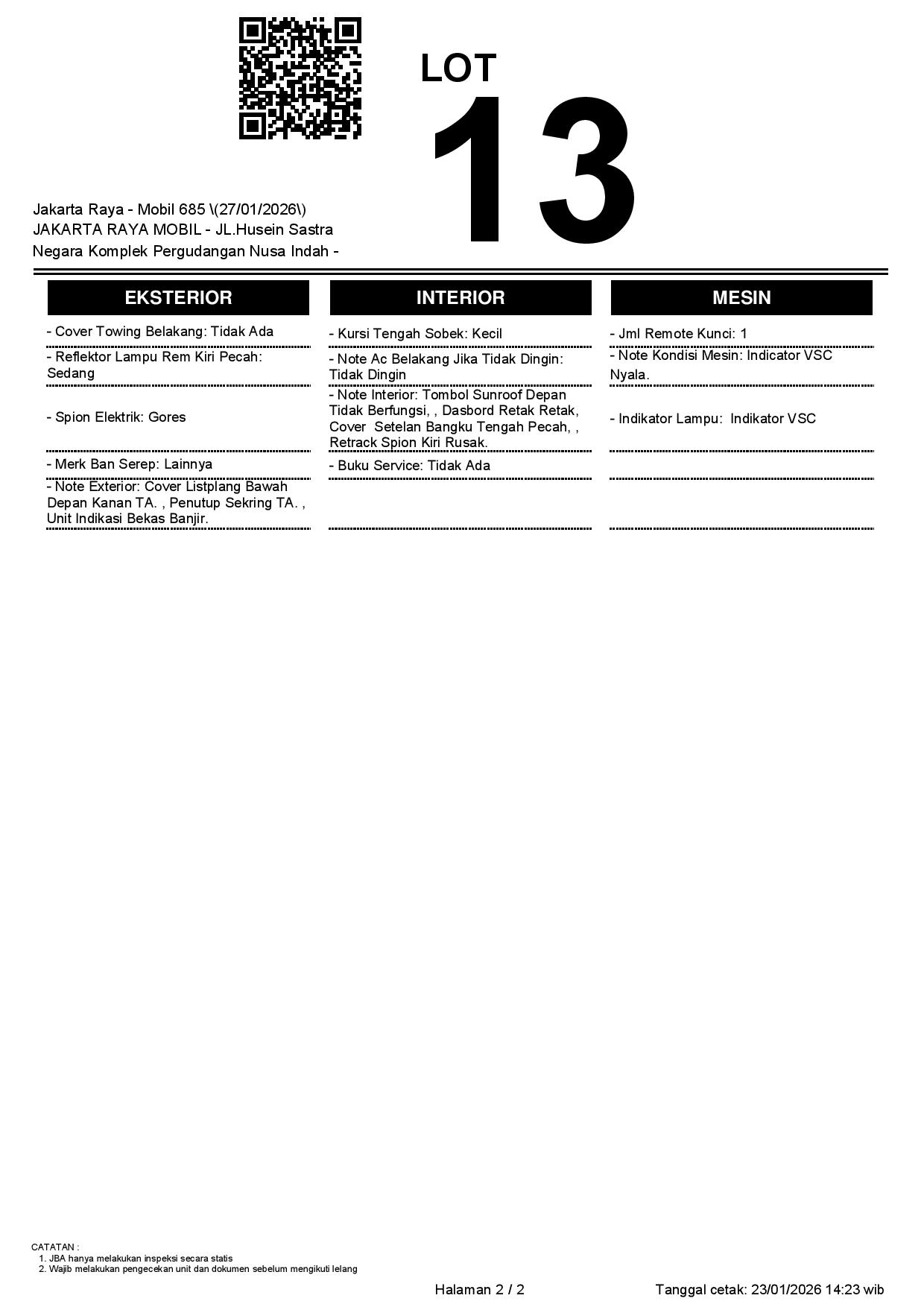 Tanggal Lelang: 27/01/2026 | 13:00 WIB
