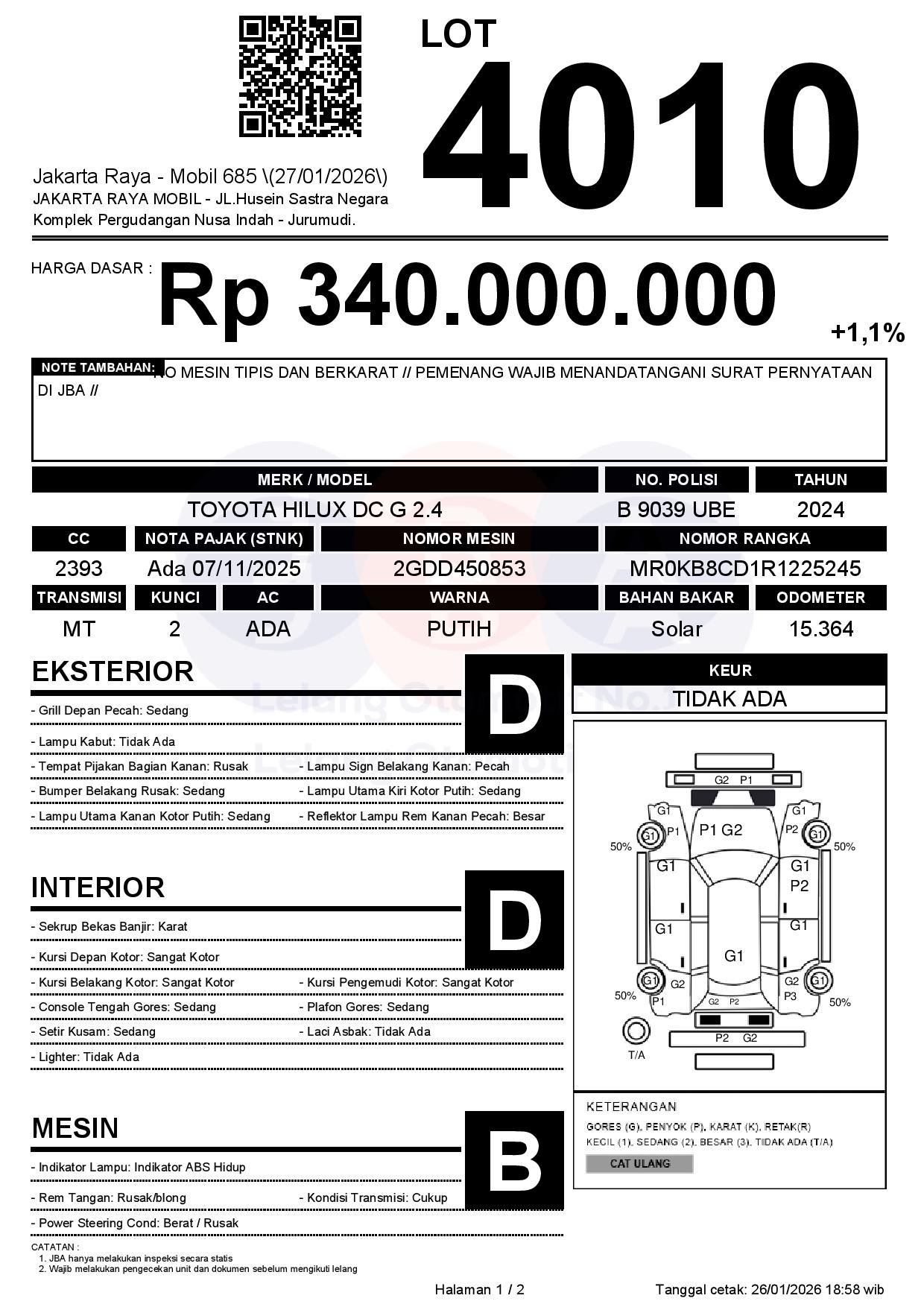 Tanggal Lelang: 27/01/2026 | 14:00 WIB