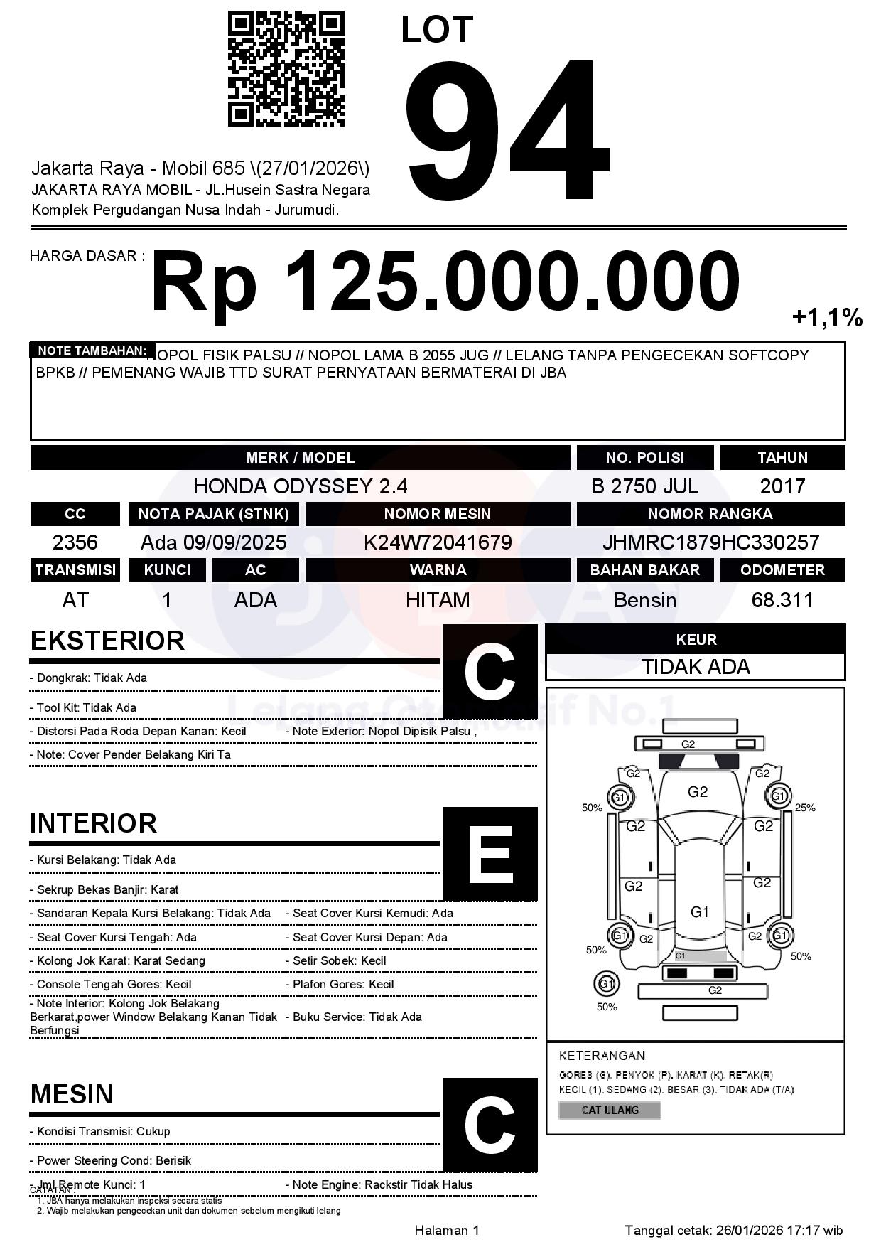 NOPOL FISIK PALSU // NOPOL LAMA B 2055 JUG // LELANG TANPA PENGECEKAN SOFTCOPY BPKB // PEMENANG WAJIB TTD SURAT PERNYATAAN BERMATERAI DI JBA