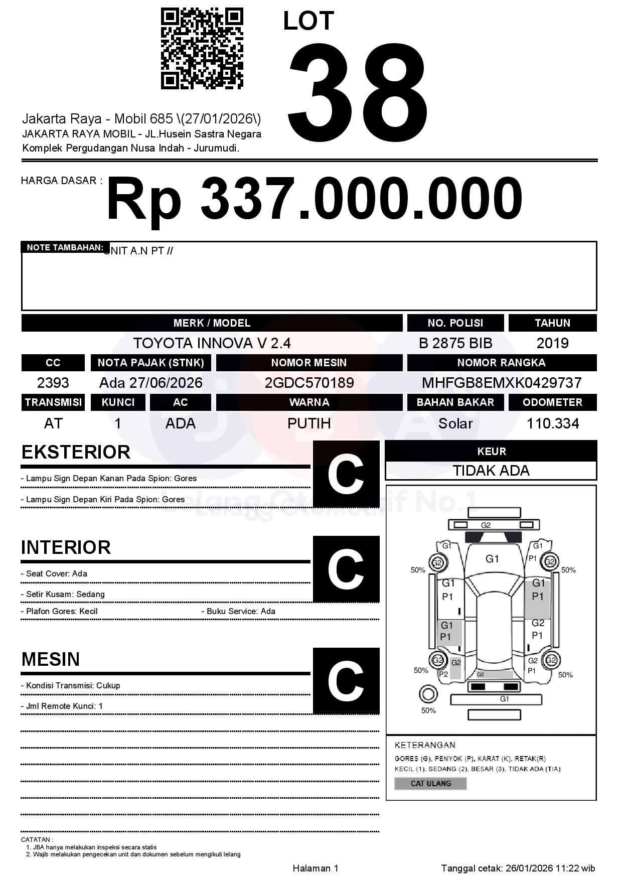 Tanggal Lelang: 27/01/2026 | 13:00 WIB