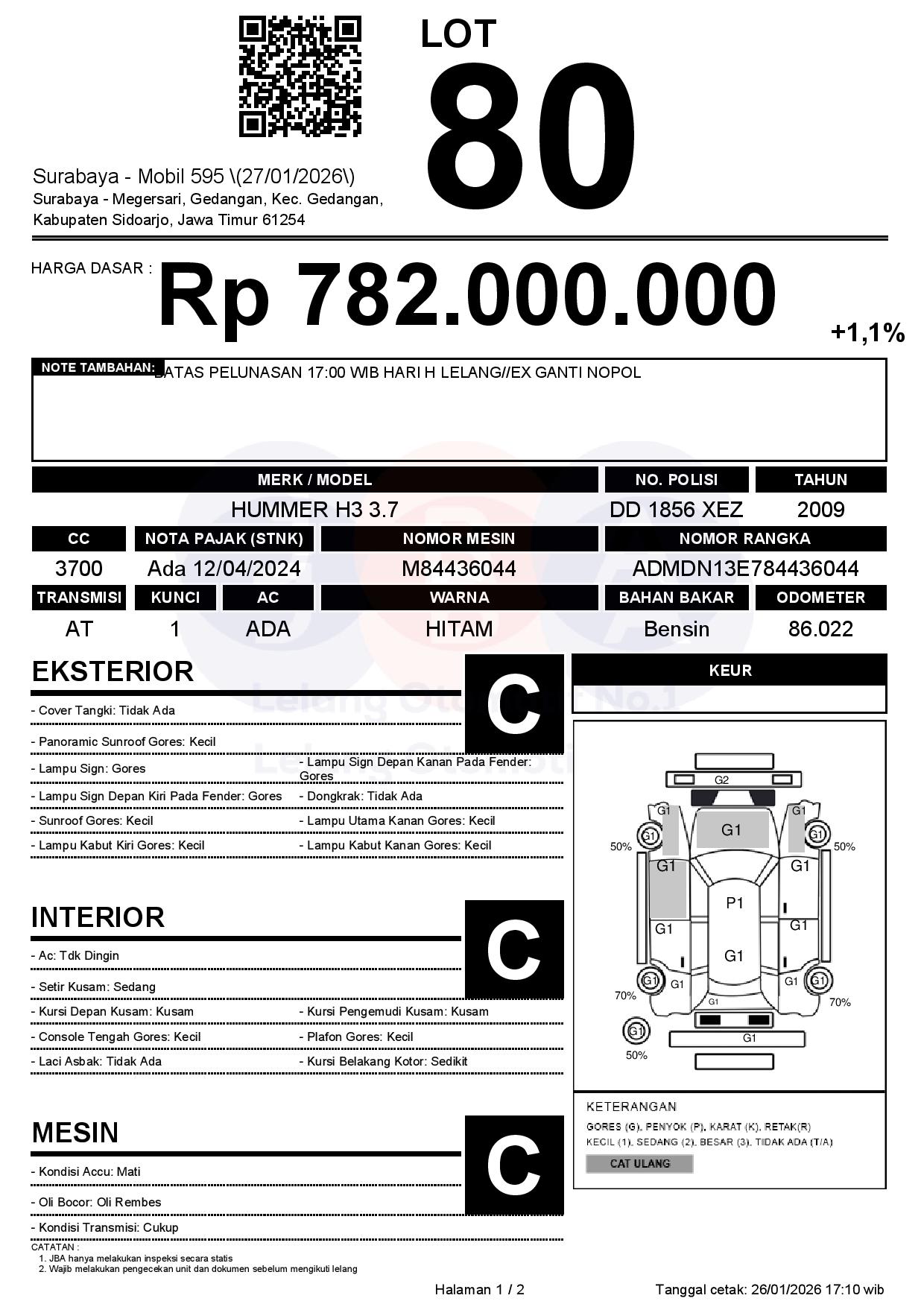 BATAS PELUNASAN 17:00 WIB HARI H LELANG//EX GANTI NOPOL