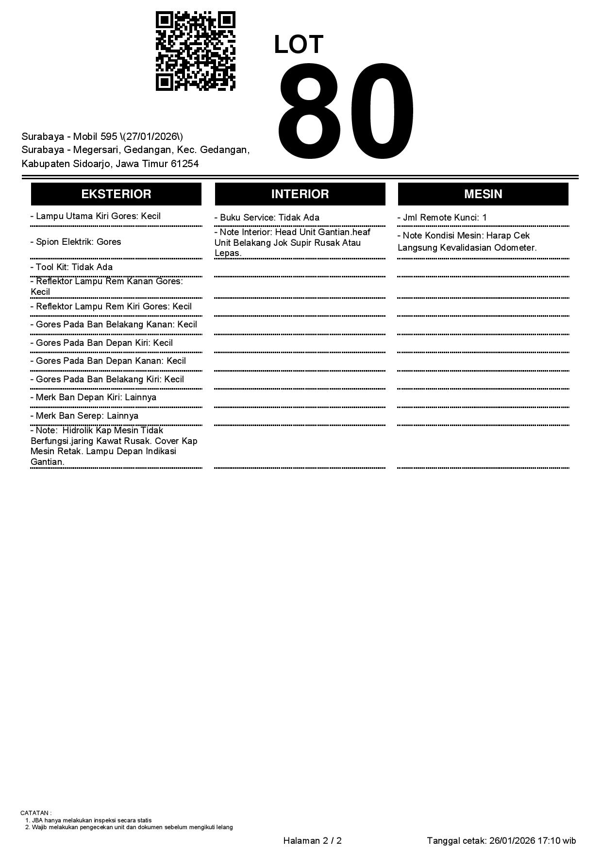 2. Peserta lelang wajib cek unit & dokumen