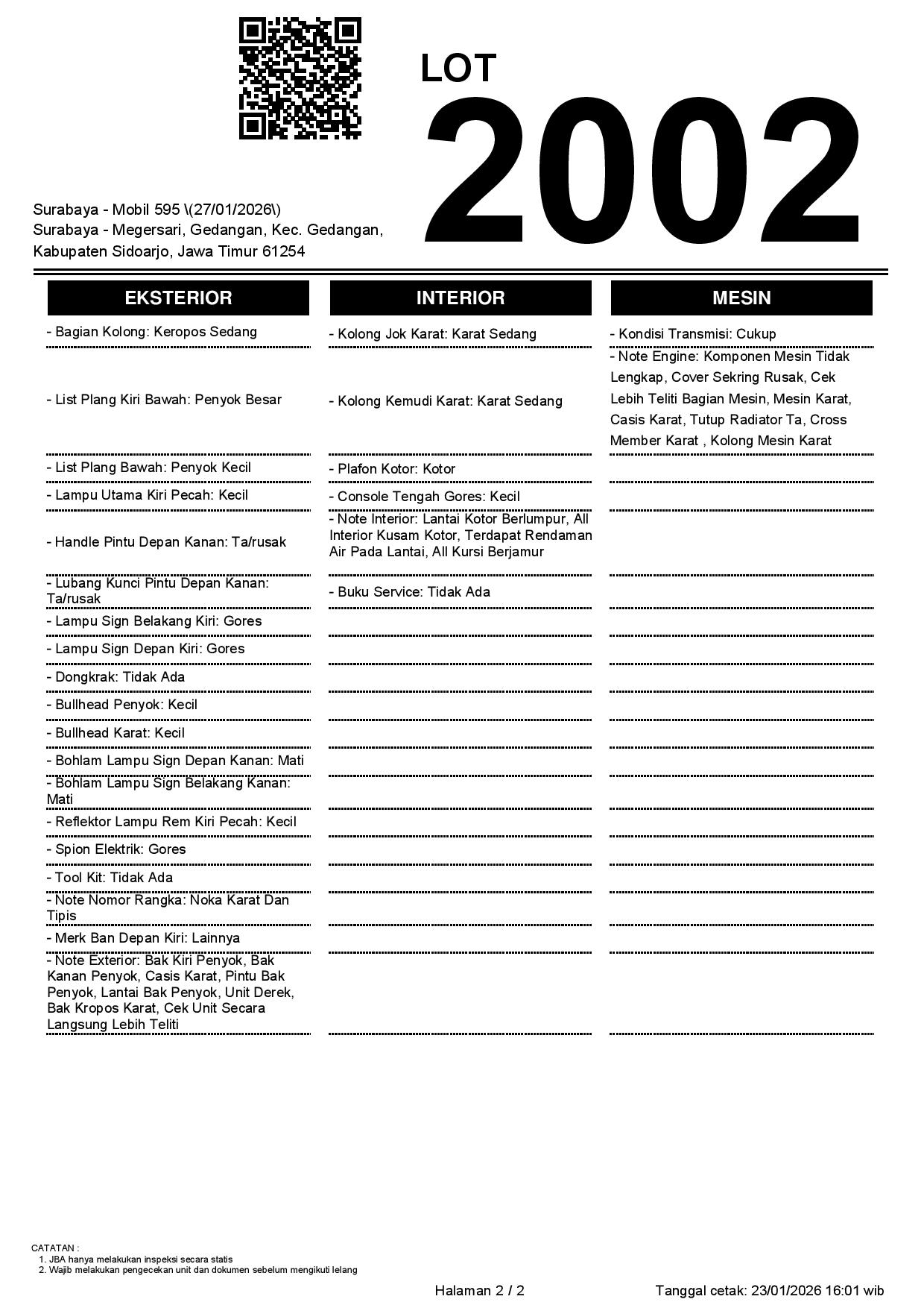 1. Peserta lelang wajib cek unit & dokumen
