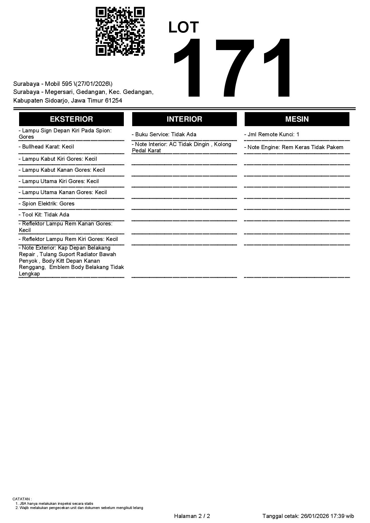 Tanggal Lelang: 27/01/2026 | 13:00 WIB