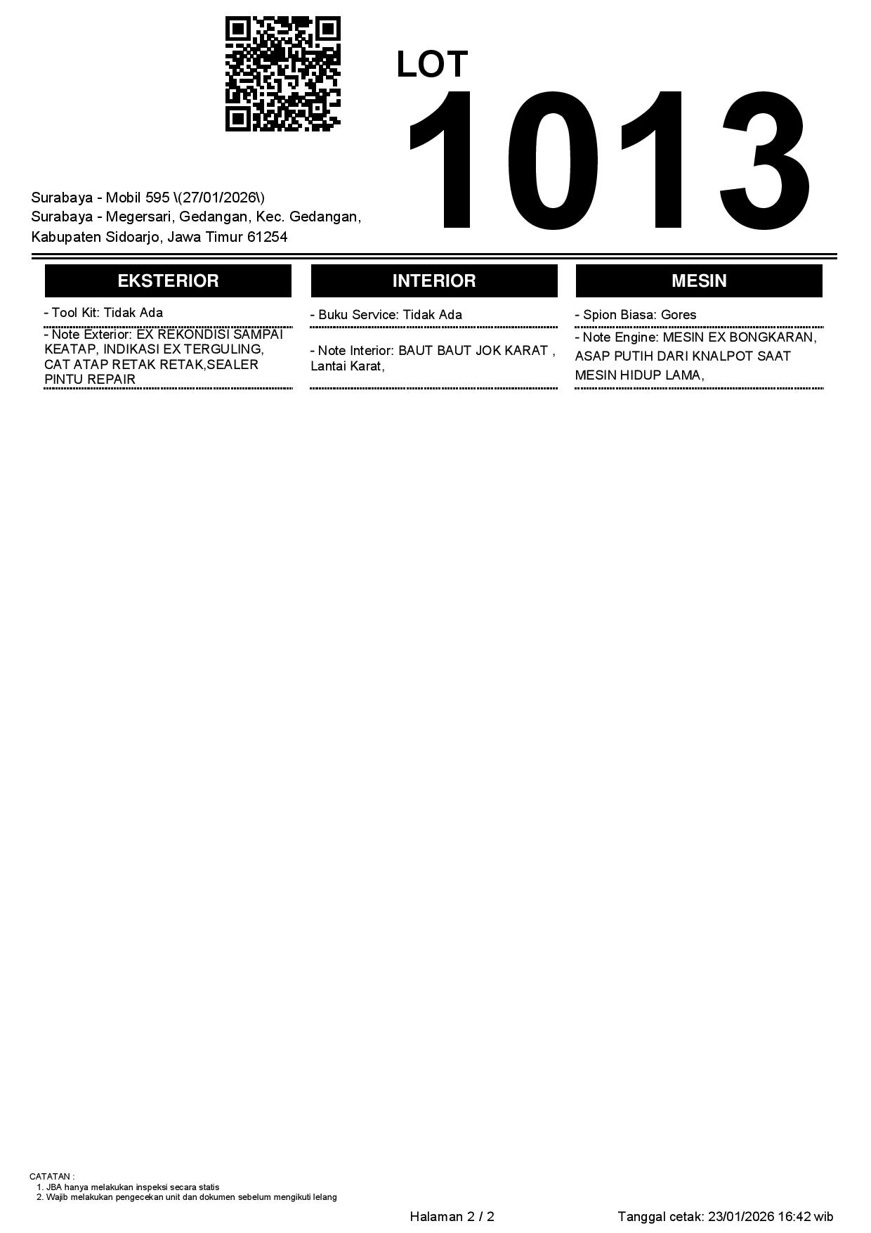 Tanggal Lelang: 27/01/2026 | 14:00 WIB