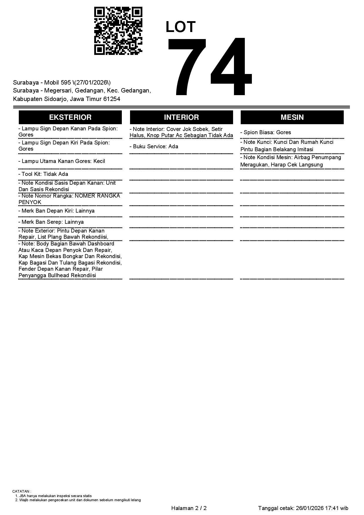 Tanggal Lelang: 27/01/2026 | 13:00 WIB