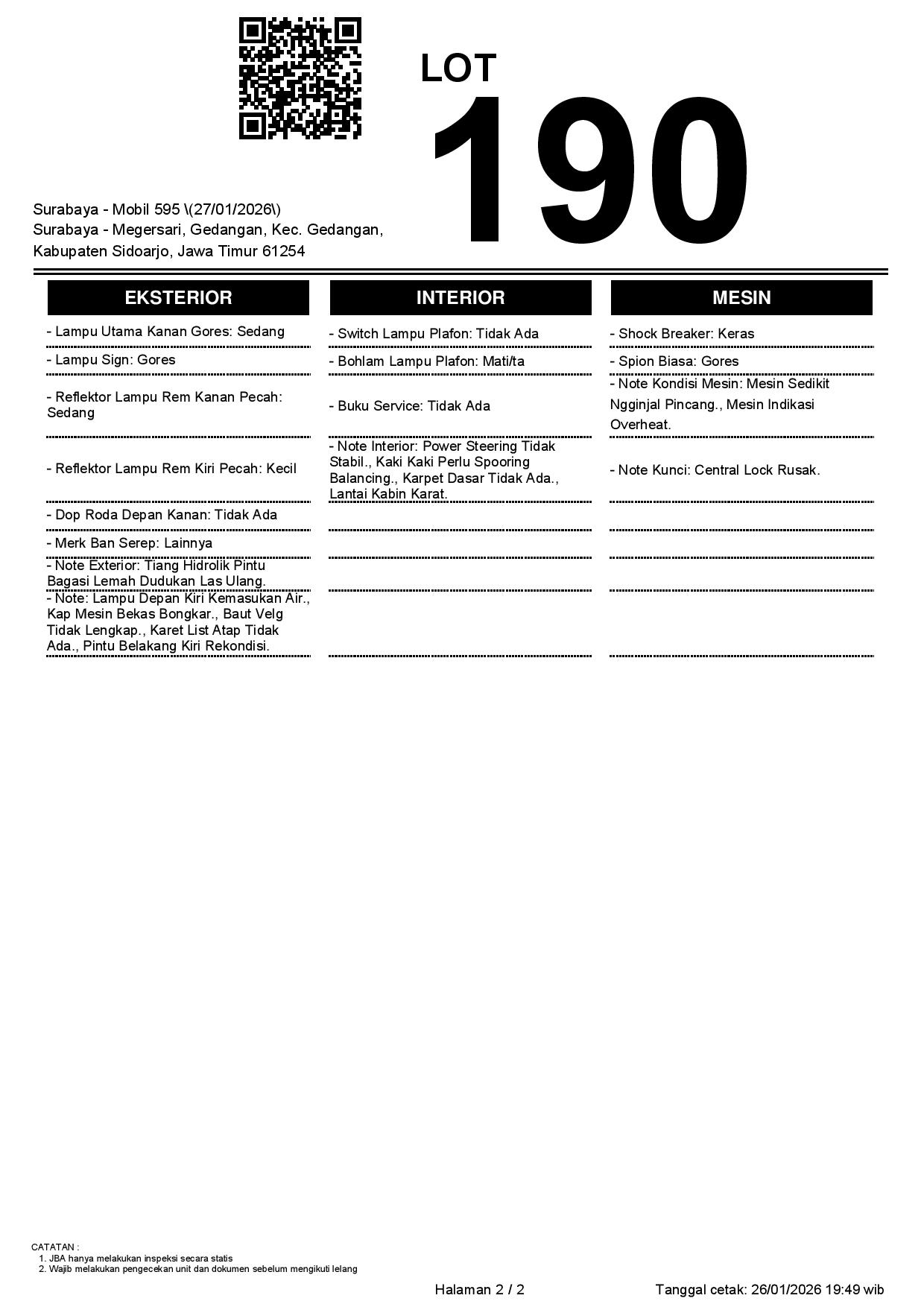 2. Peserta lelang wajib cek unit & dokumen