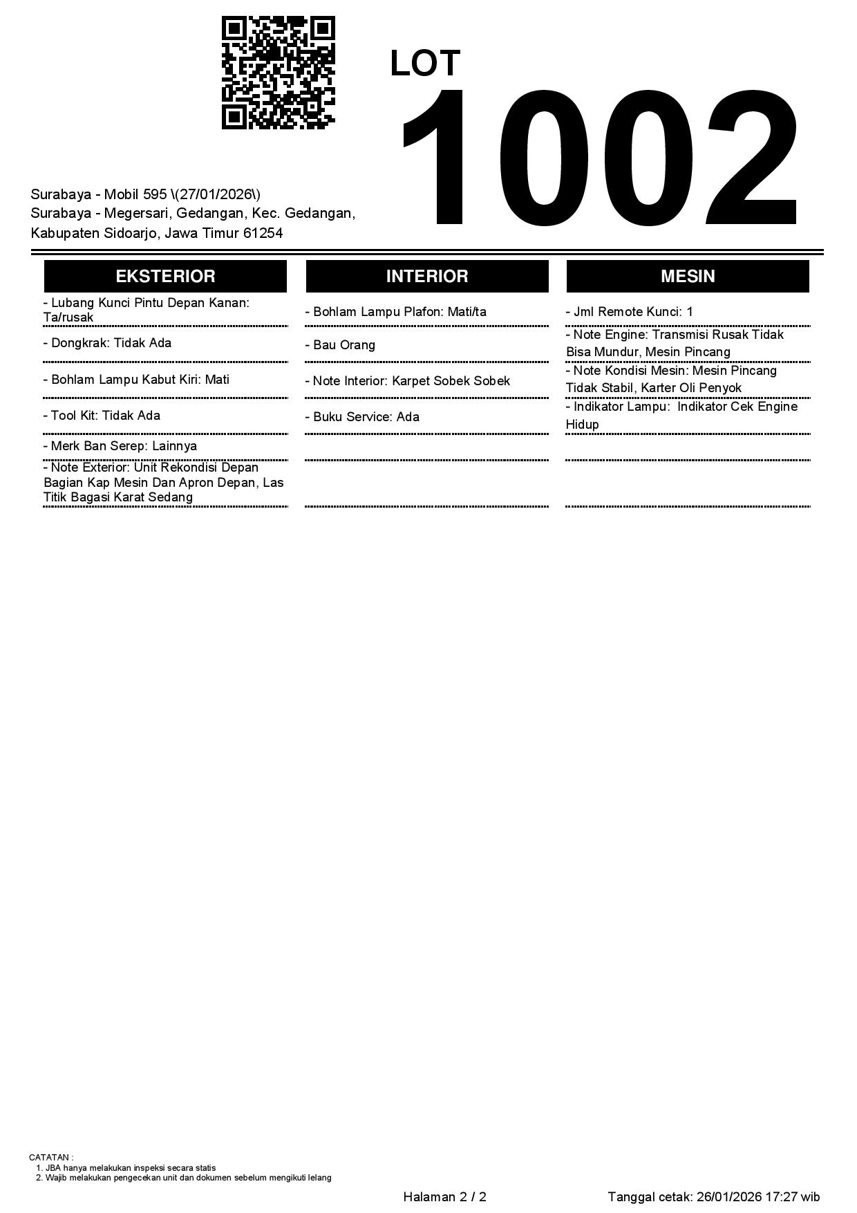 Tanggal Lelang: 27/01/2026 | 14:00 WIB