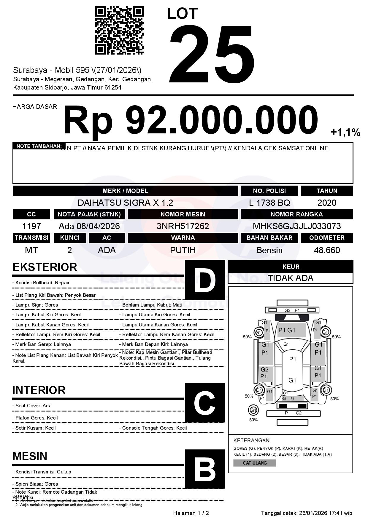 Tanggal Lelang: 27/01/2026 | 13:00 WIB