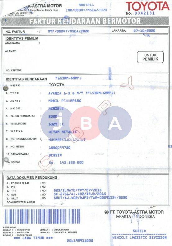 A.N PT // NAMA PEMILIK DI STNK DAN NOTICE PAJAK KURANG HURUF (PT) //