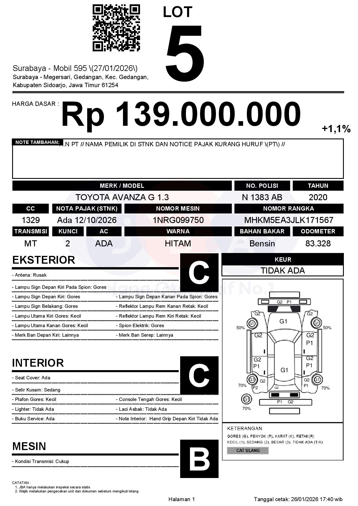 Tanggal Lelang: 27/01/2026 | 13:00 WIB