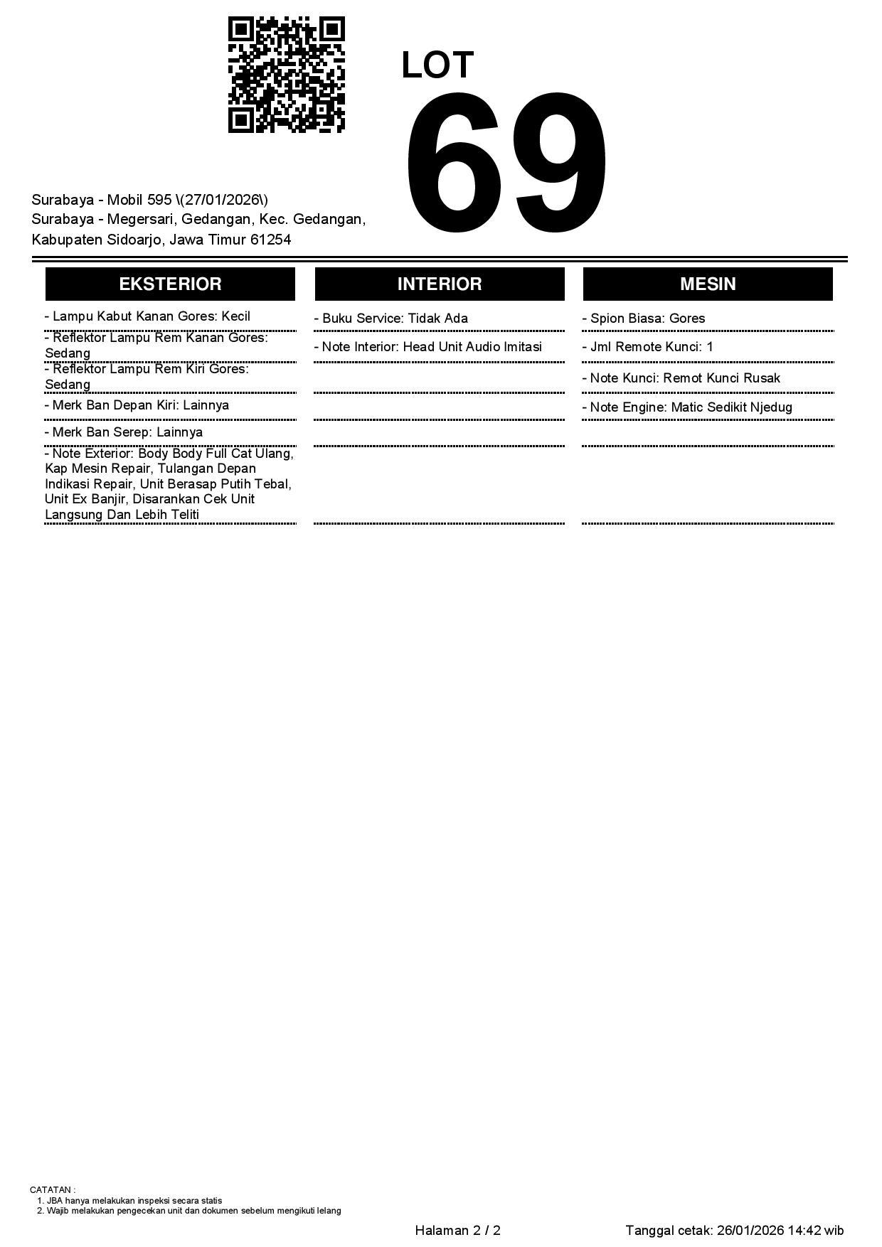 2. Peserta lelang wajib cek unit & dokumen